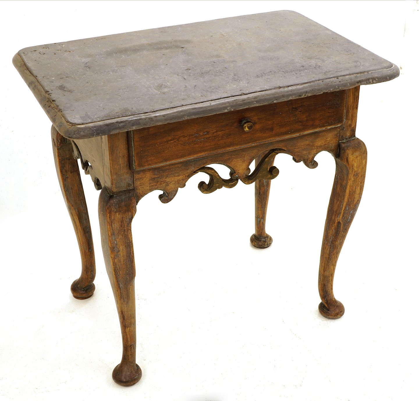 Rokokobord med grålig stenplade. Danmark ca. år 1760. H: 77cm. Plade: 81x55cm