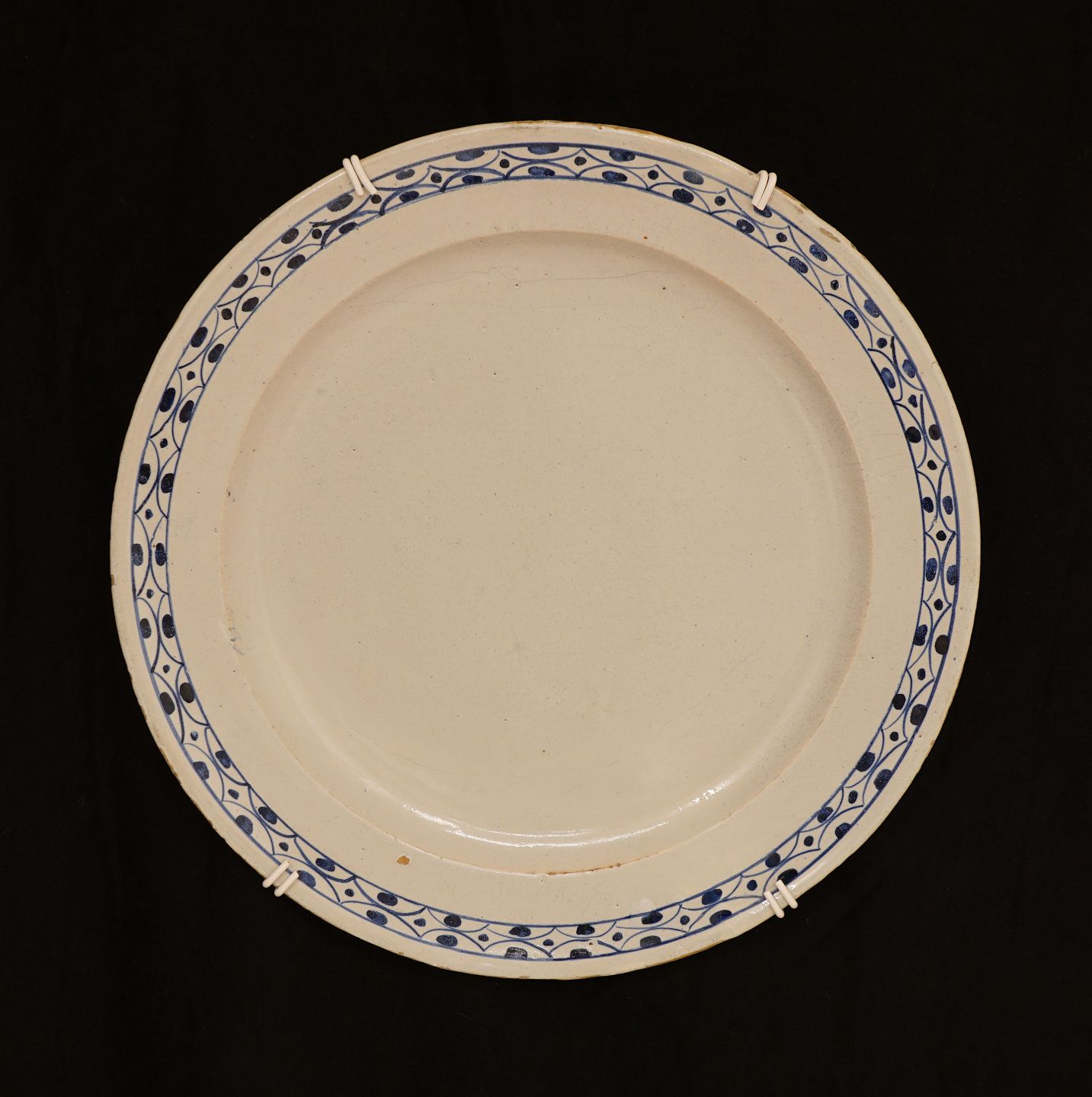 Blådekoreret fad i fajance. Fajancefabrikken Antvorskov 1812-15. Signeret. D: 32cm