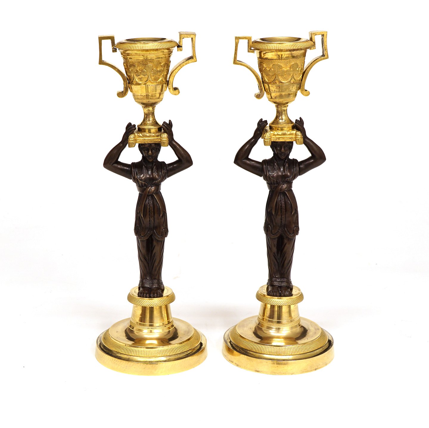 A pair of Empire gilt bronze candlesticks