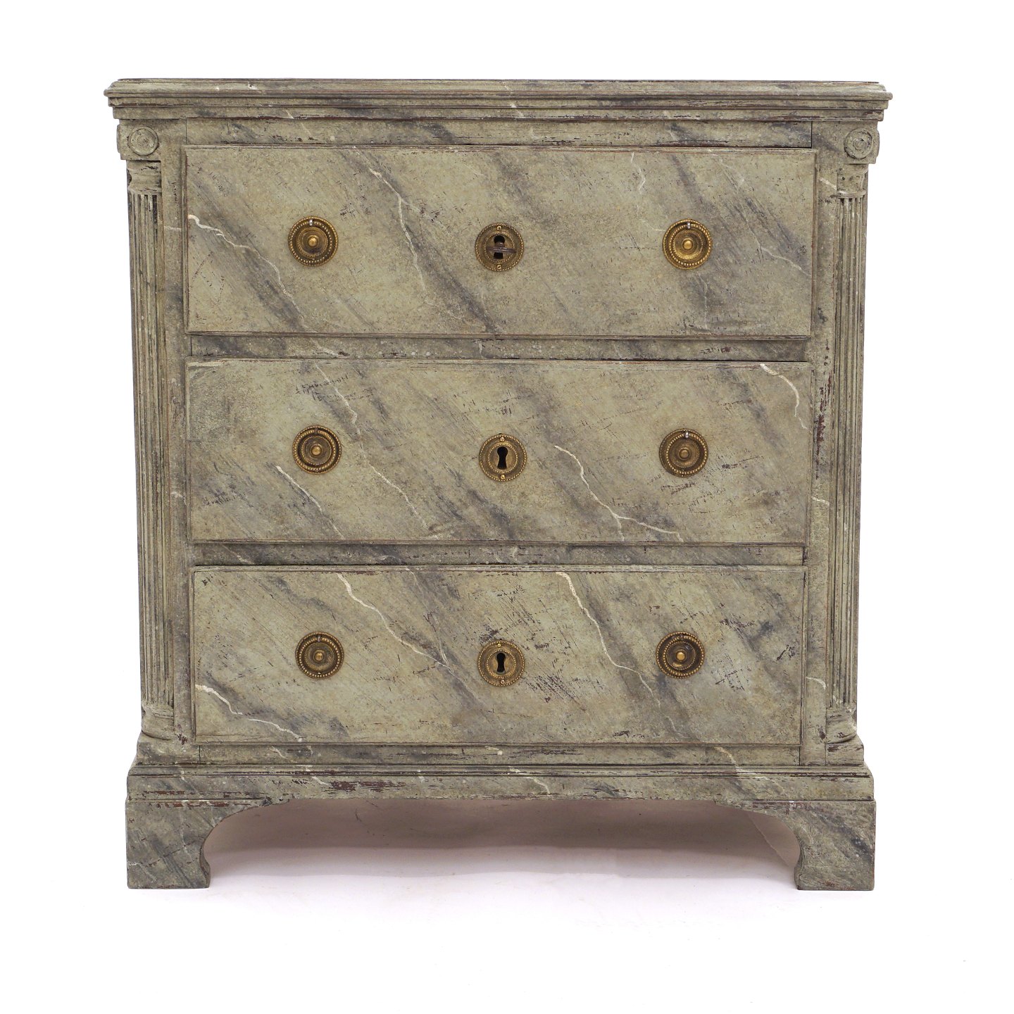 A 18th century blue/green painted Louis XVI chest of drawers Denmark circa 1780 H: 80cm. top: 42x73cm Item number: 27312