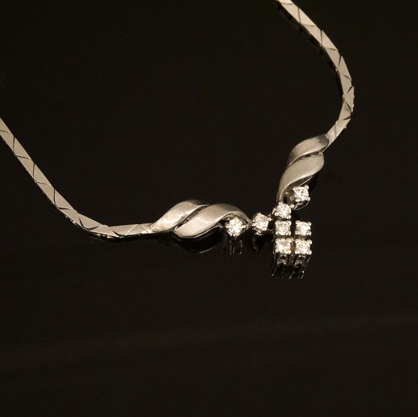 A 14kt whitegold necklace with 8 diamonds L: 42cm Item number: 33692B