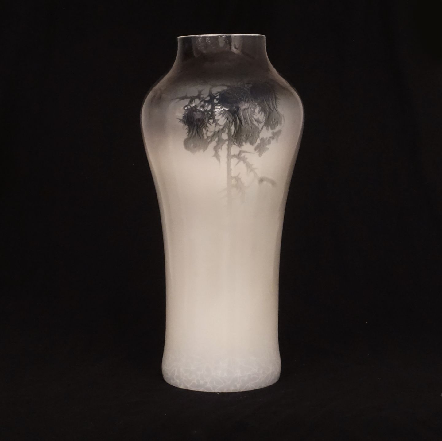 Bertha Nathanielsen, 1869-1914, for Royal Copenhagen: Stor Art Noveau vase med tidsler og sommerfugle i porcelæn