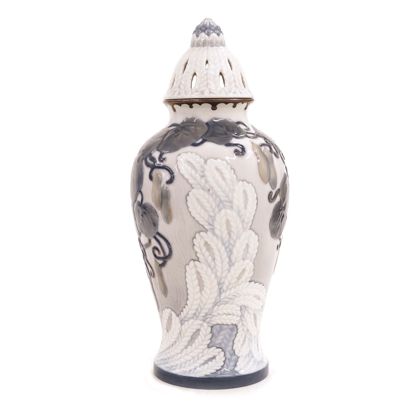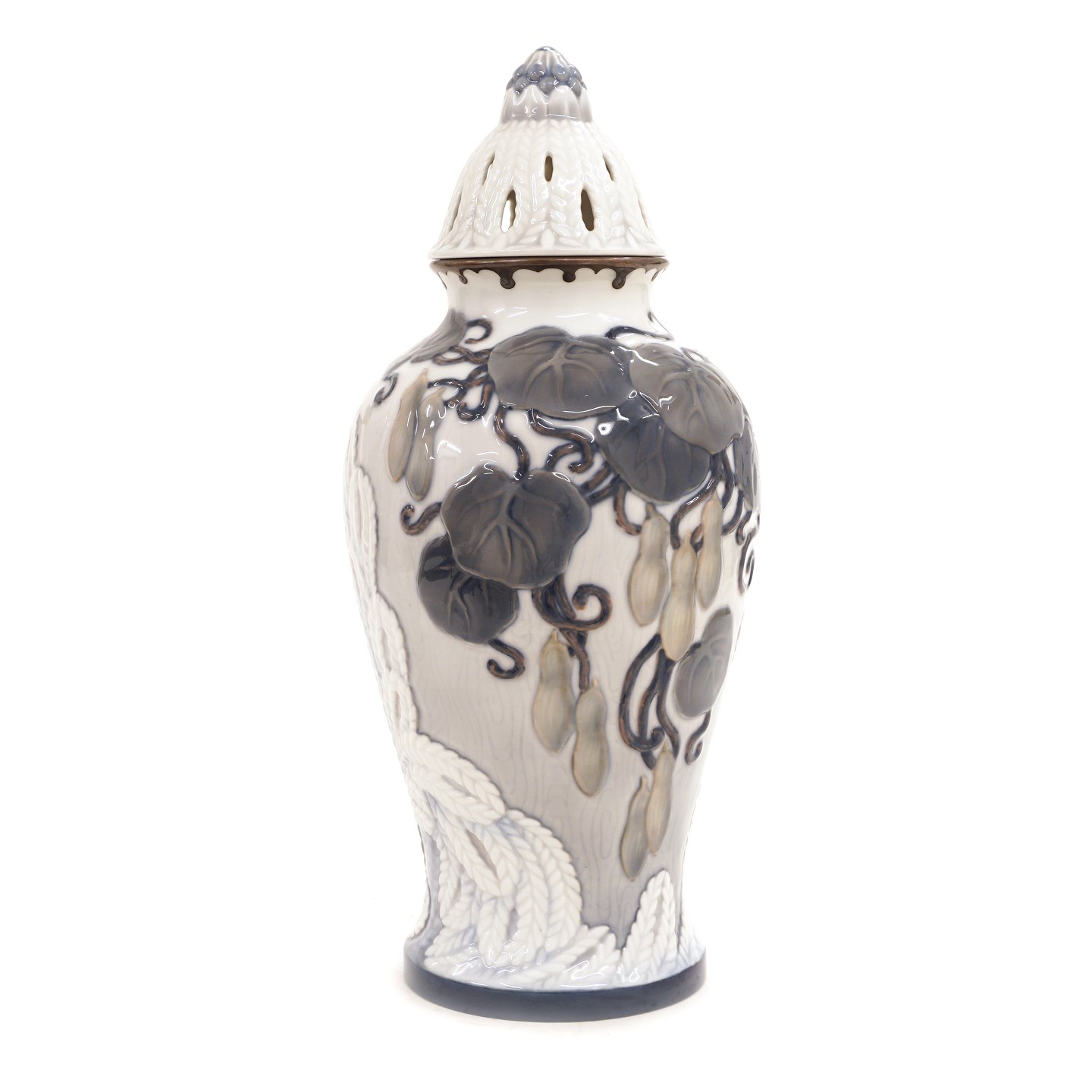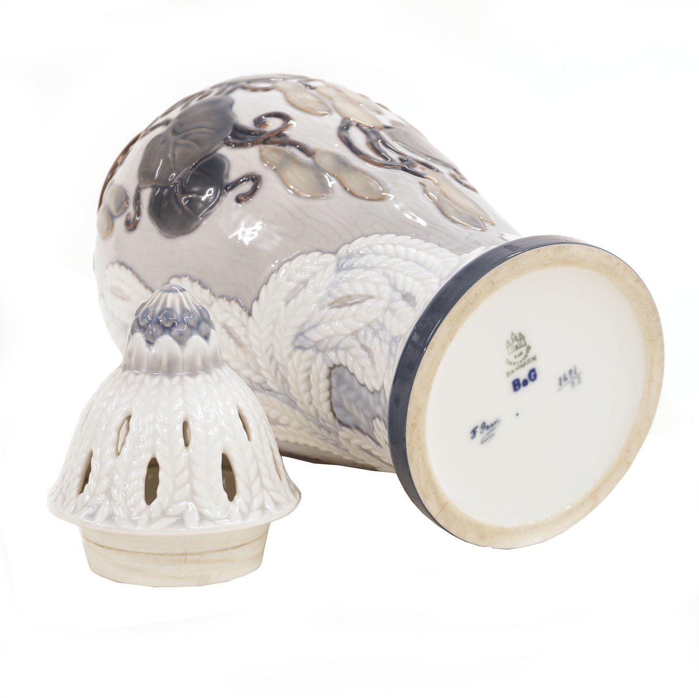Fanny Garde lågvase. Fanny Garde, 1855-1928, lågvase. Porcelæn i relief. Signeret F. Garde. Bing & Grøndahl perioden 1914-15. H: 37cm