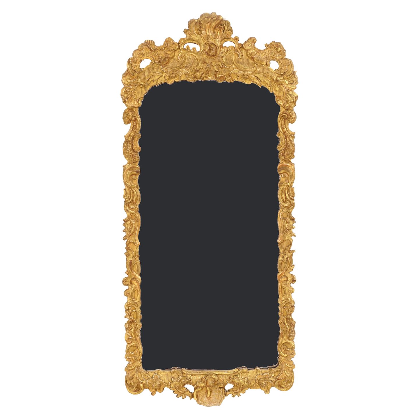 A gilt wood cut Rococo mirror. Denmark circa 1760. Measures: 114x52cm