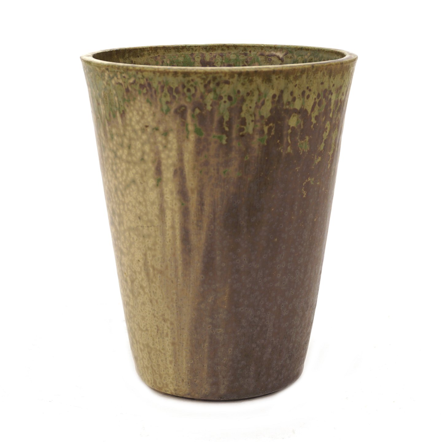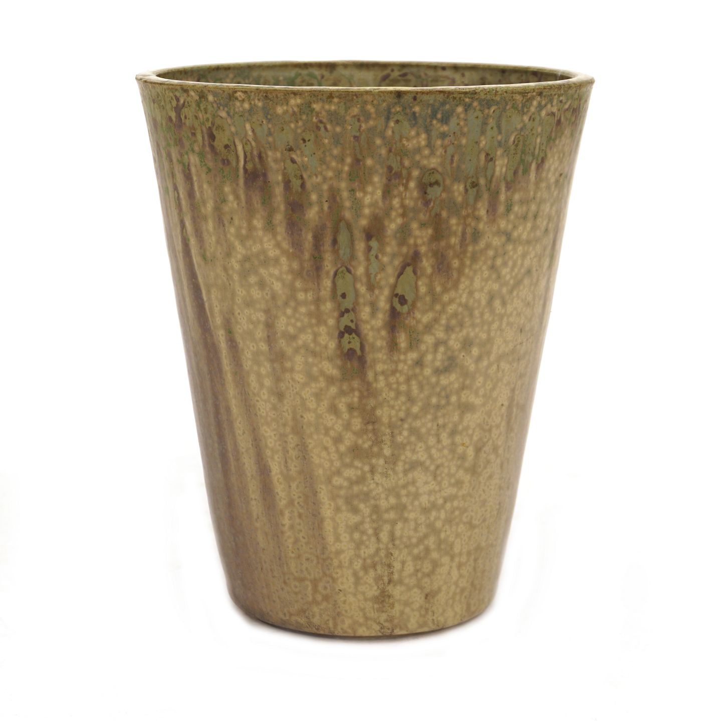 Arne Bang keramik. Stor Arne Bang vase med spættet glasur. Signeret Arne Bang. H: 18cm. D: 15cm