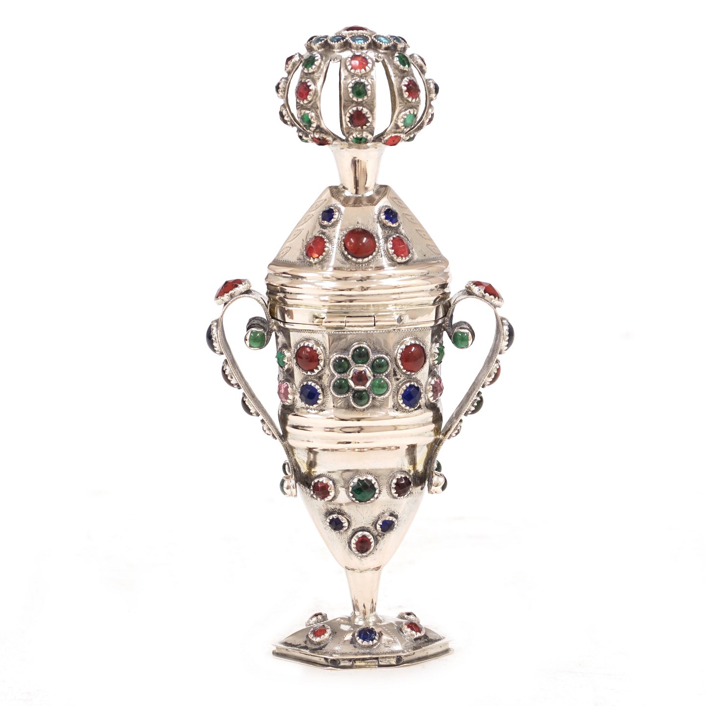 Hovedvandsæg sølv. Reimer Diedrich Dethlefsen, Sønderborg, 1819-36. Stort "100"-stens hovedvandsæg i delvist forgyldt sølv med 117 flusser og originalt etui. H: 15cm. V: 100gr