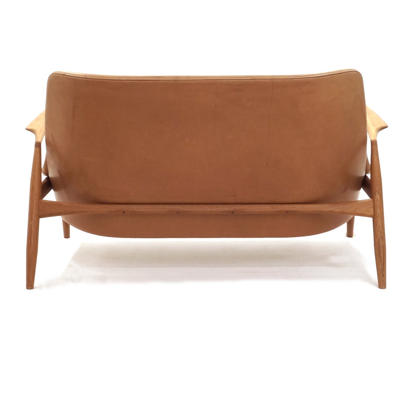 Ib Kofod-Larsen "The Seal" two seater sofa, teak and leather, by Brdr. Petersen, Denmark