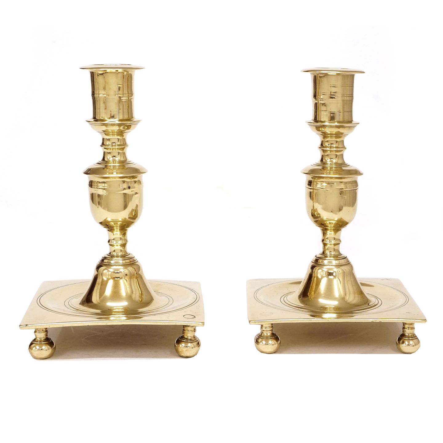 Pair of brass Baroque candlesticks. Denmark circa 1720-40. H: 23cm. Base: 15x15cm