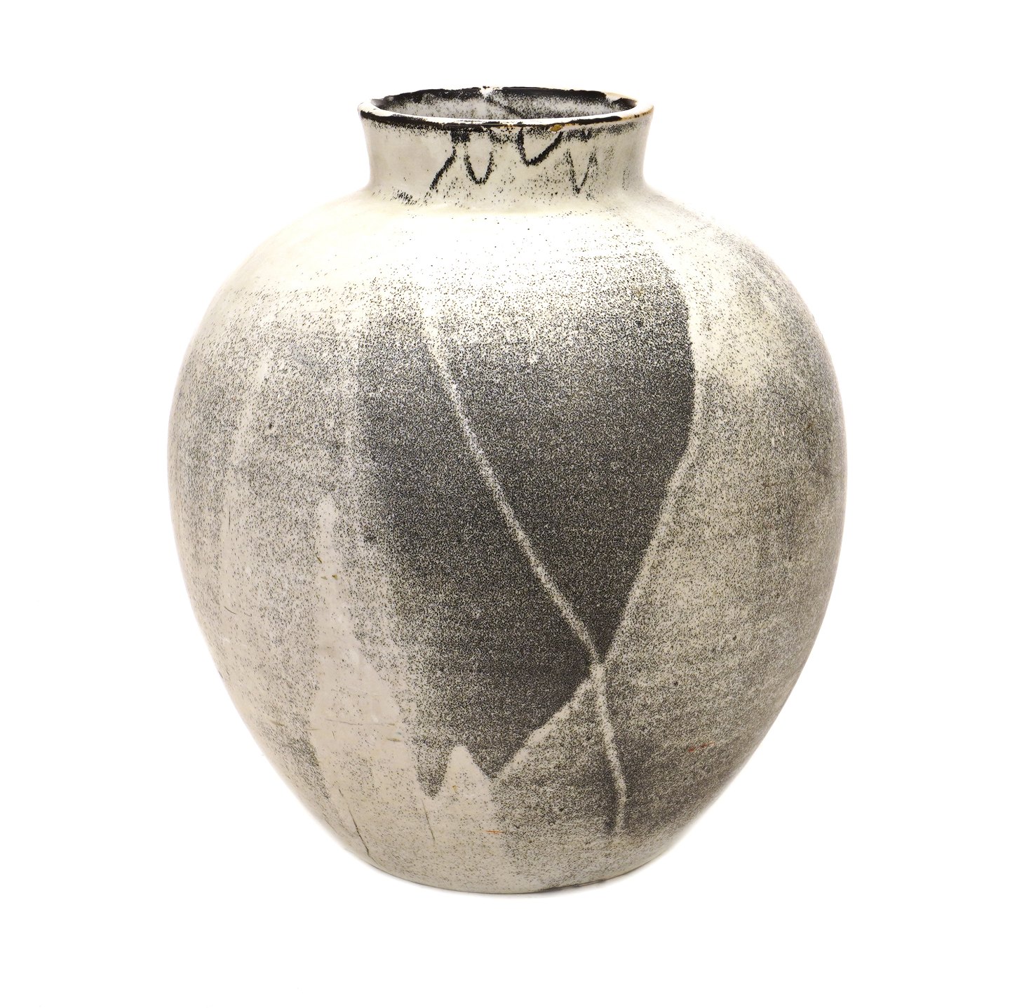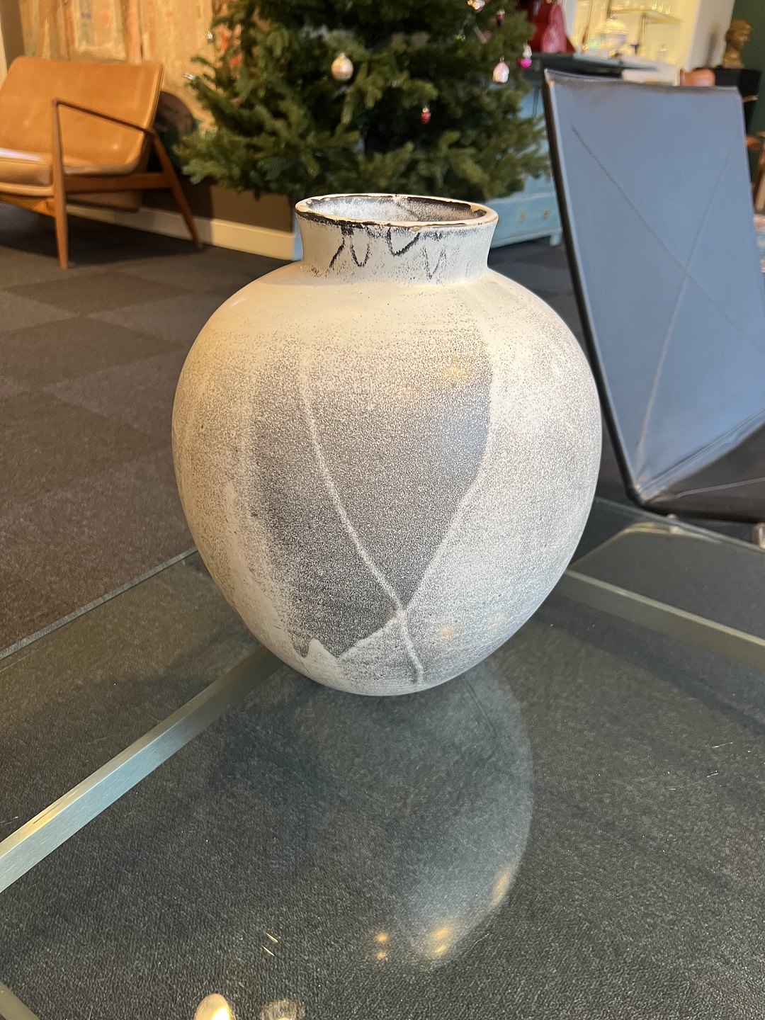 Svend Hammershøi for Kæhler stor vase i lys og sort dobbeltglasur