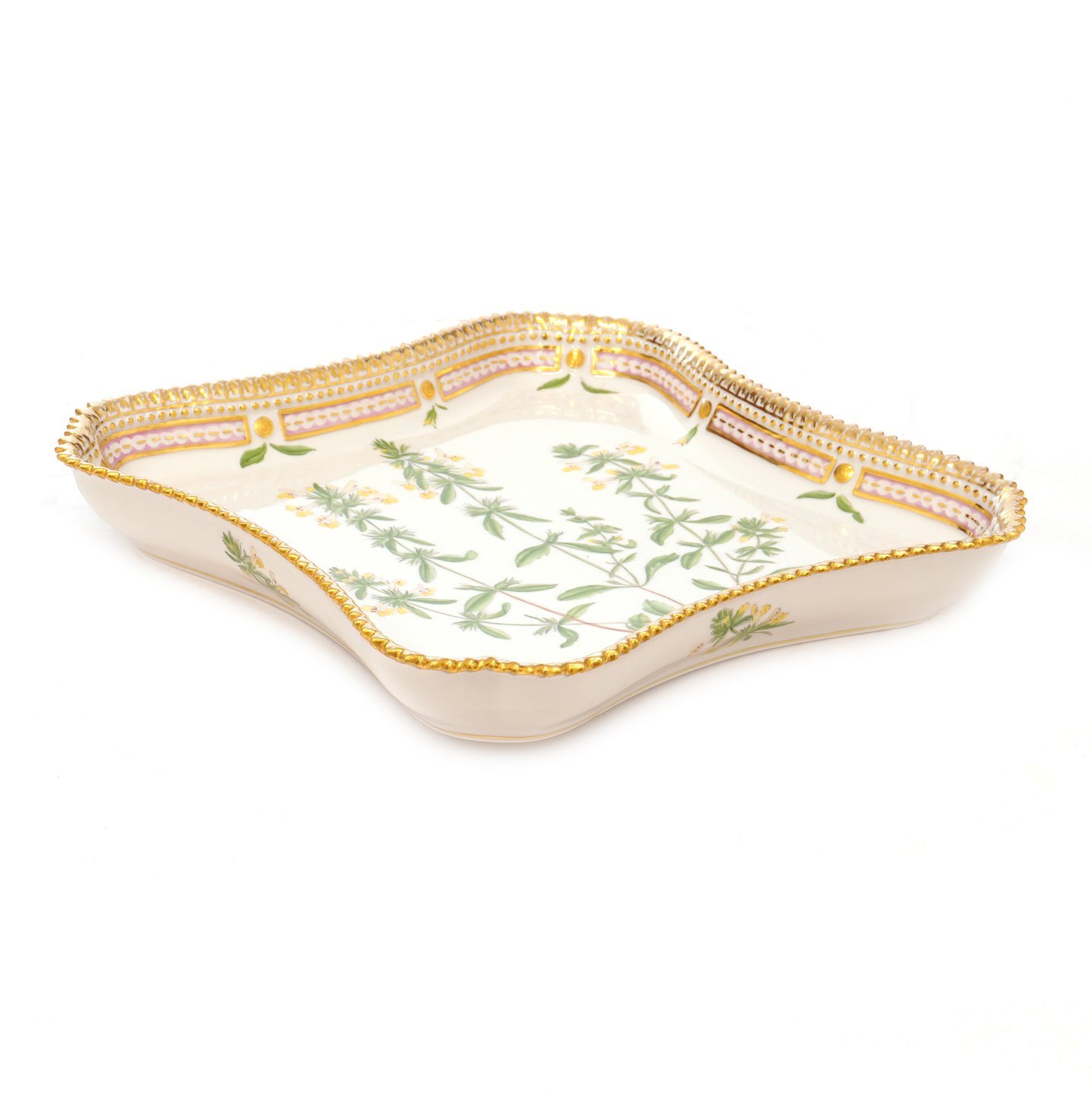 Royal Copenhagen Flora Danica 3564 firkantet porcelæn bakke "Stachys Annuus L"