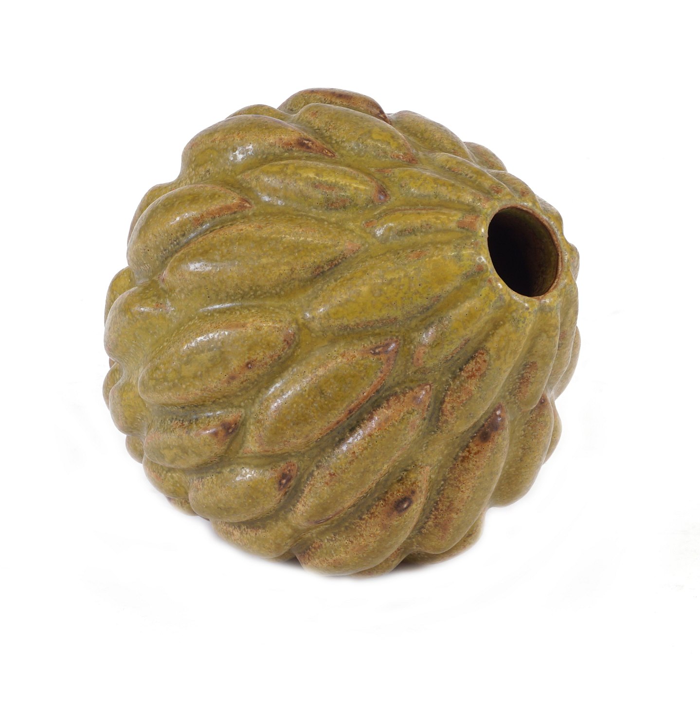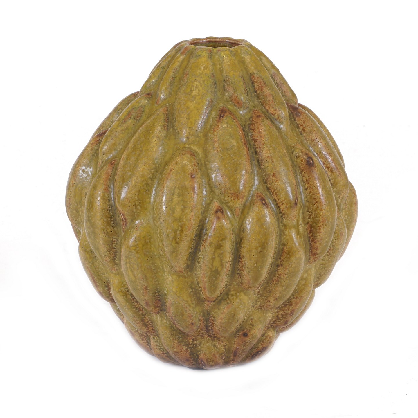 Stentøjsvase i knoppet stil med solfatara glasur