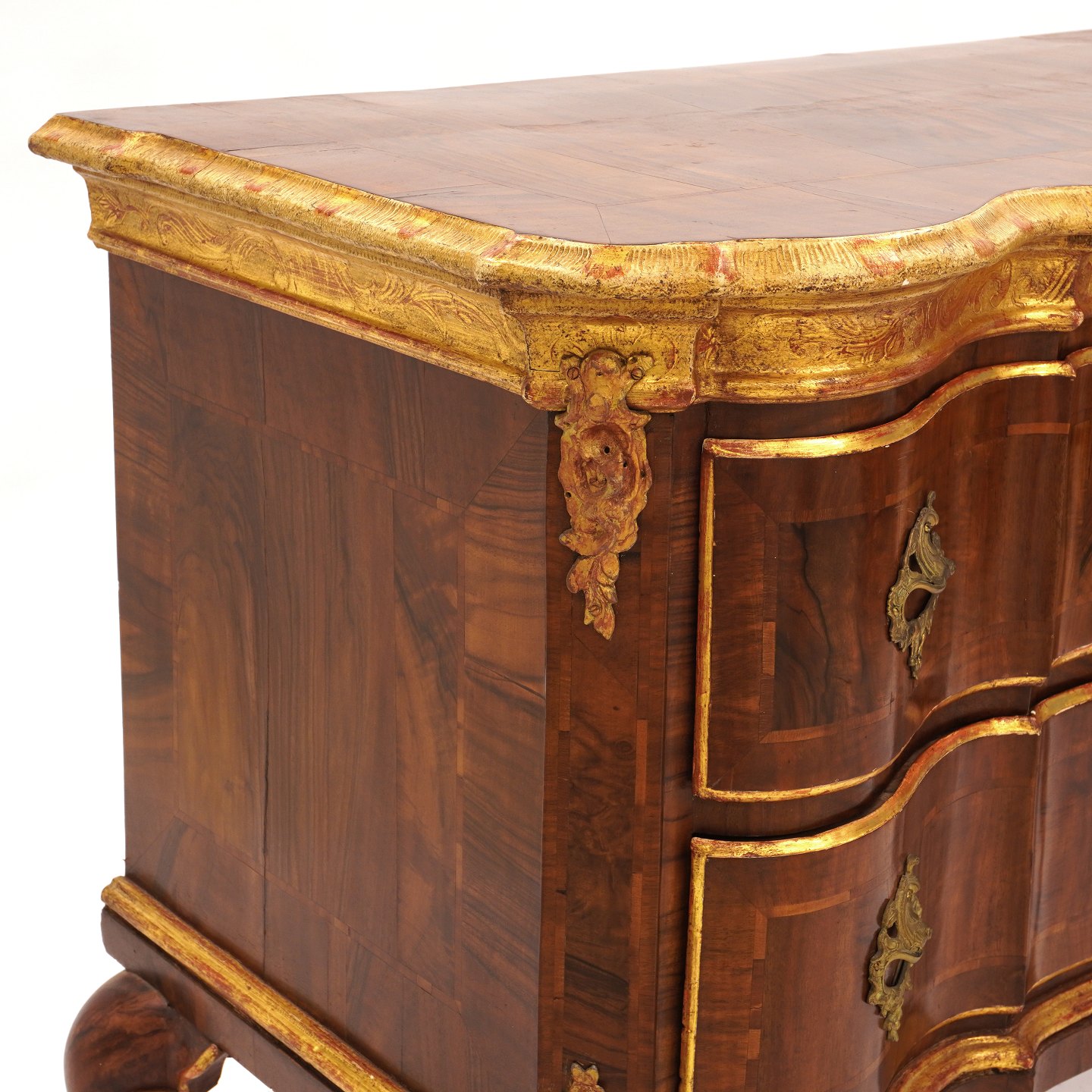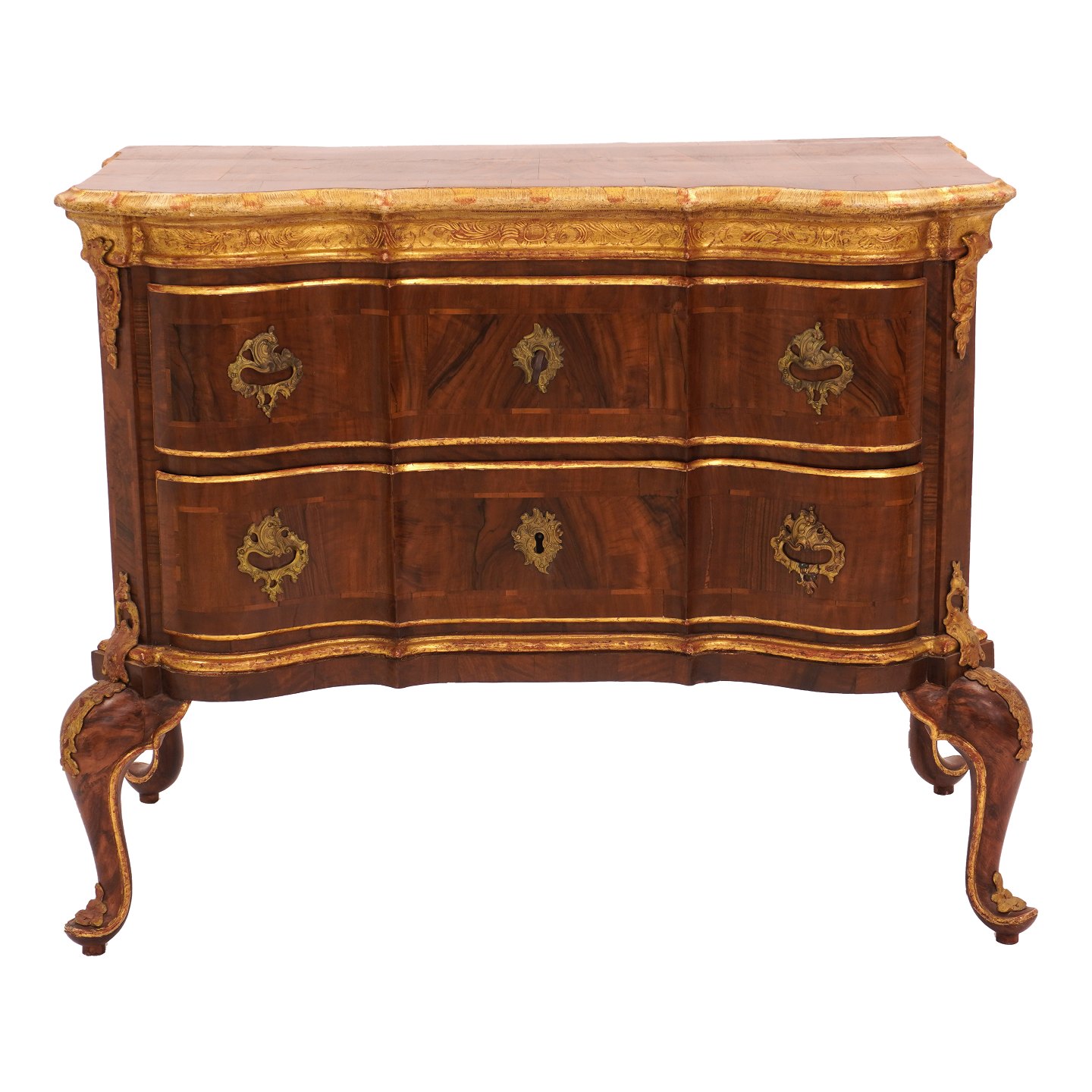Stor nøddetræsfineret og forgyldt kommode udført i Mathias Ortmanns stil