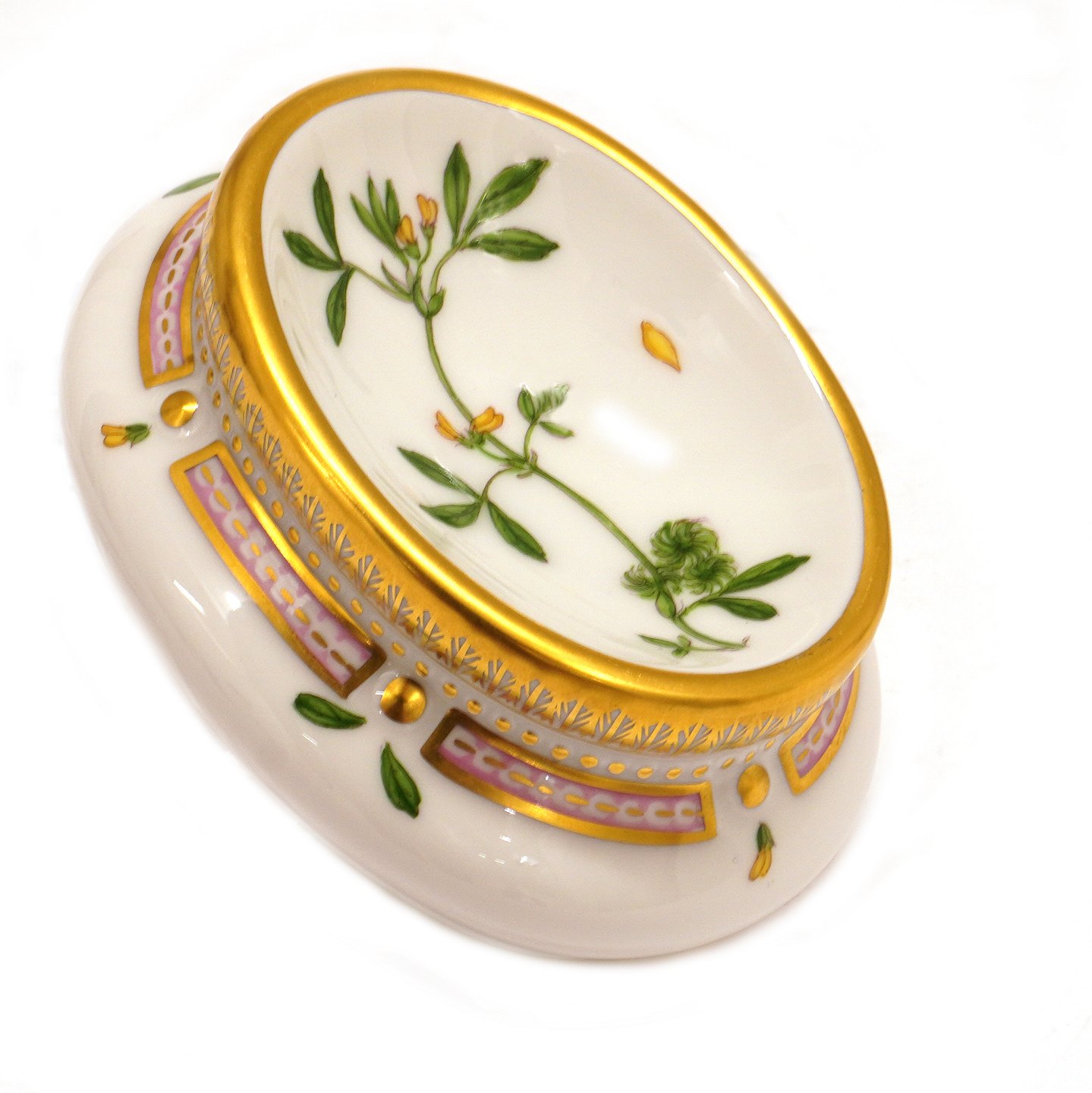 Flora Danica saltkar 3567. Royal Copenhagen saltkar 3567 "Medicago polymorpha L.". H: 4,5cm. L: 11cm
