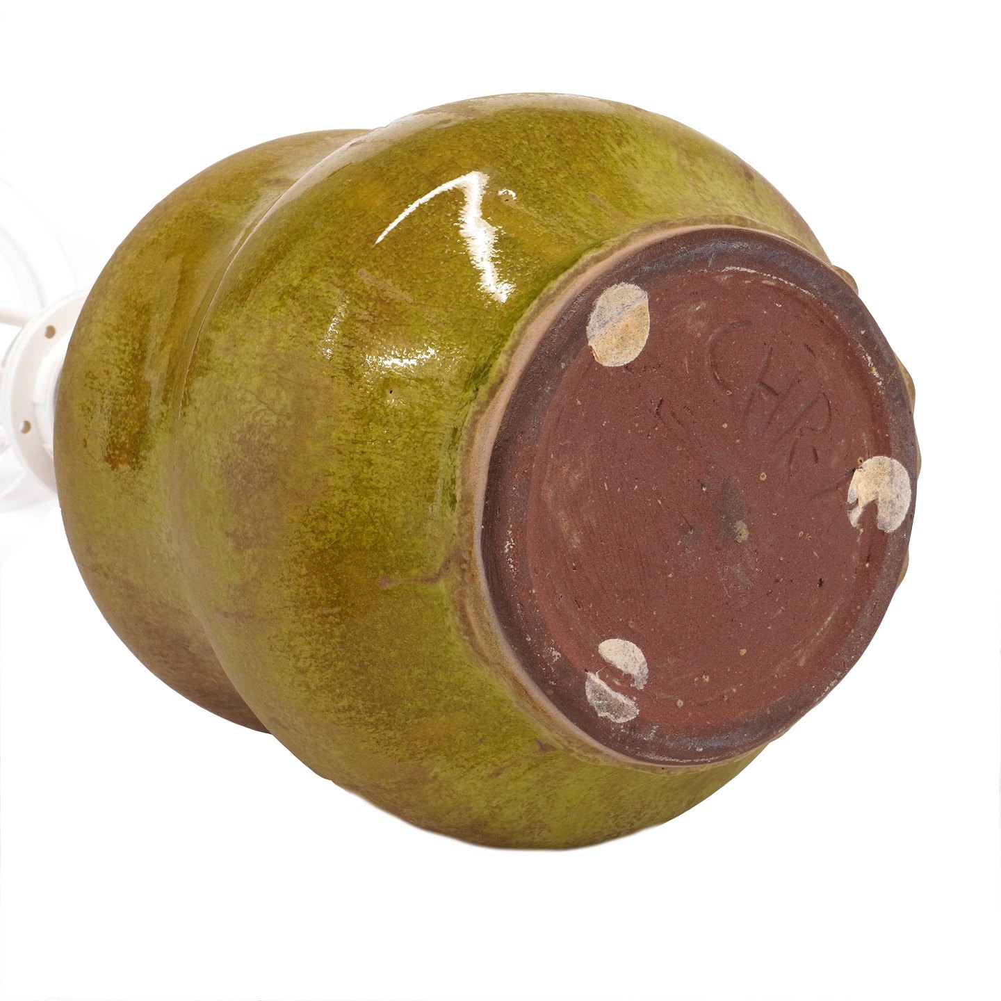 Christian Poulsen, 1911-91, lampe i stentøj med delvis blank solfatara glasur. Signeret. H: 21cm. + fatning