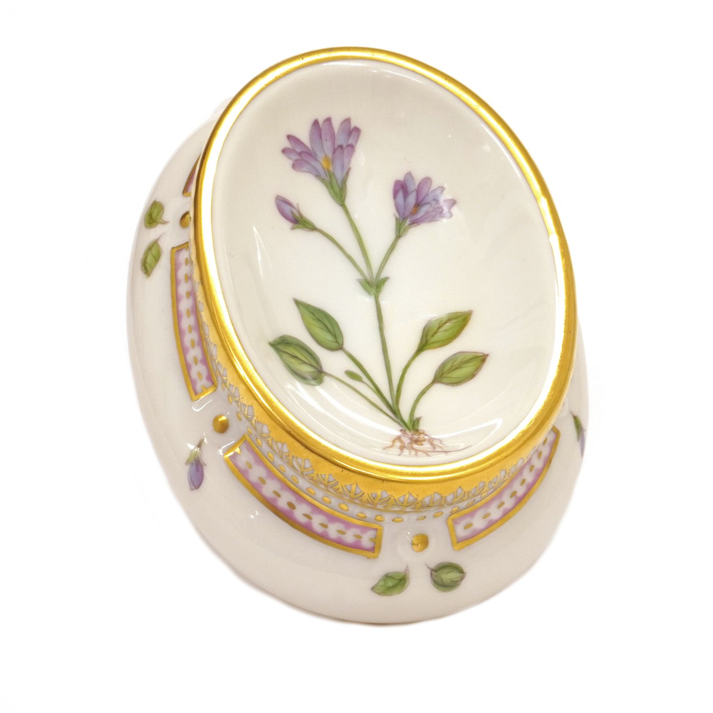 Royal Copenhagen Flora Danica salt dish 3625. "Primula integrifolia Oed.". H: 4,5cm. L: 11cm