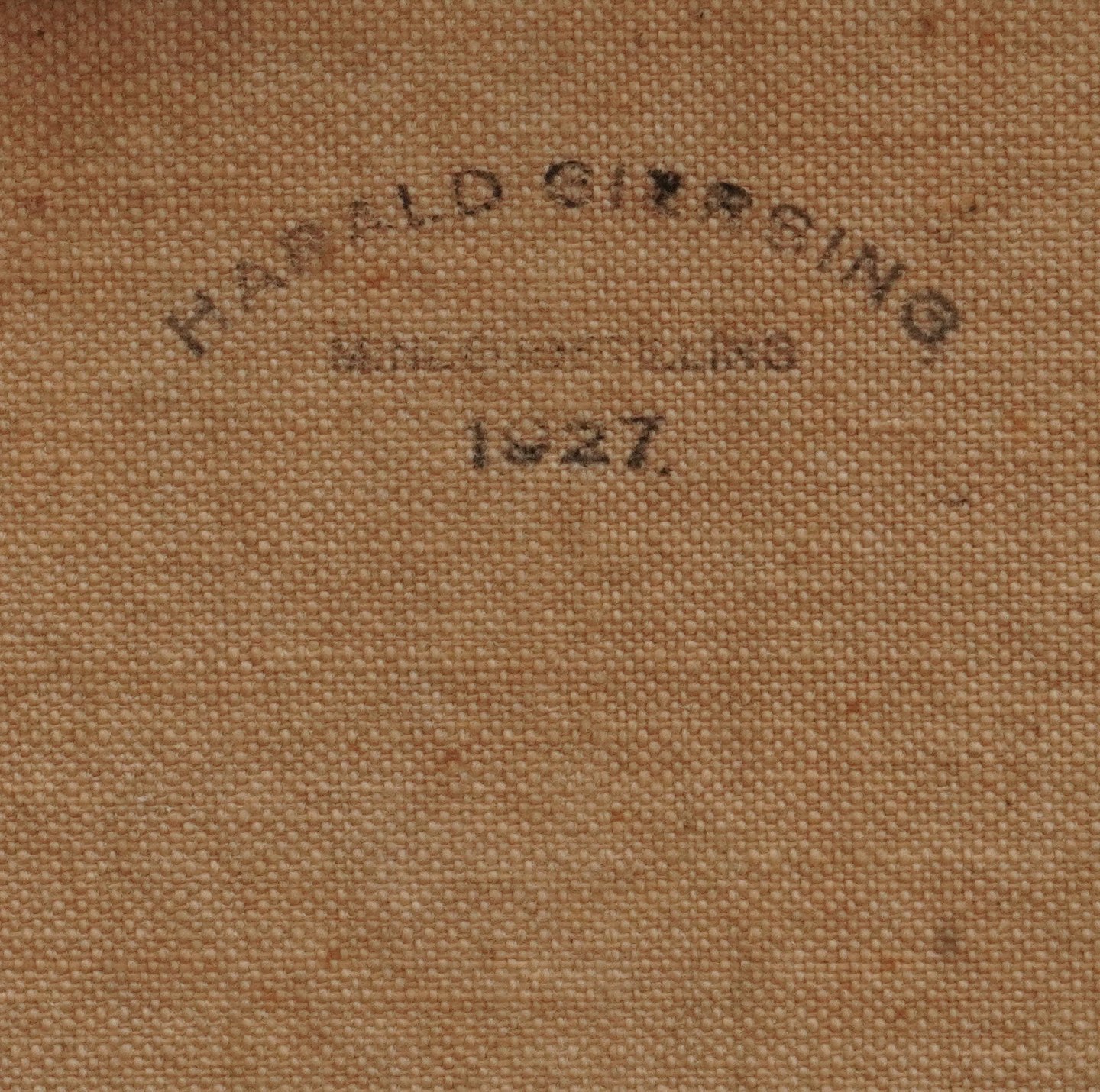 Udstillet på kunstnerens mindeudstilling 1927 og med stempel herfra