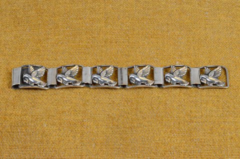 Silver bracelet, articulated in six parts, each decorated with doves with a sprig from the olive tree in its beak. Stamped 830S. Size: 18 cm. Art No. 90