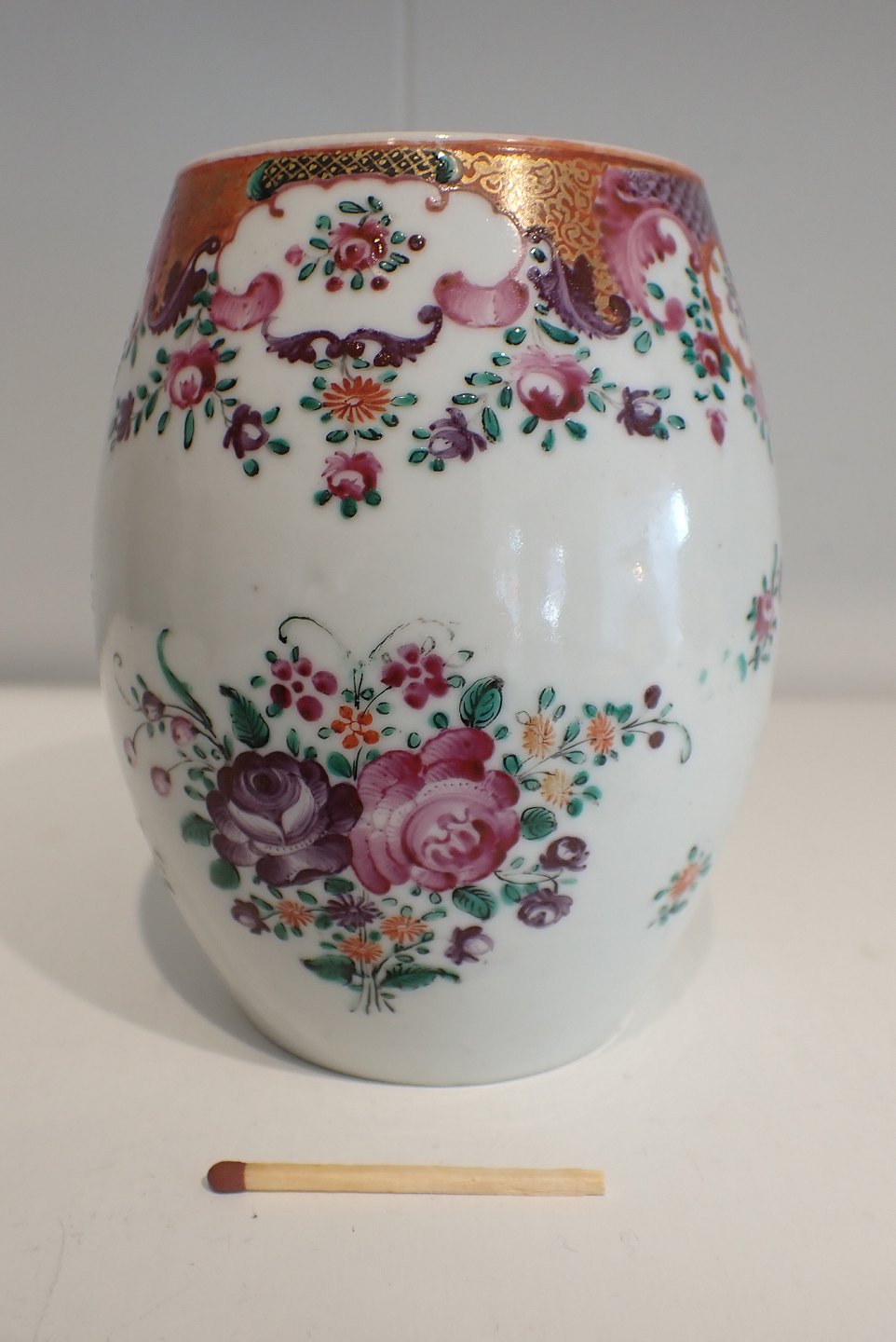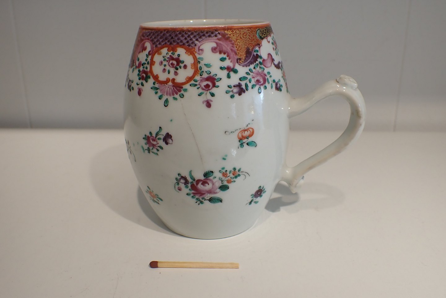 Stort hankekrus, kinesisk fra Chìen Lung perioden ((1736 - 1796). Dekoreret i overglasur med familie Rose dekoration. - Rosa, guld, rødt og grønt. Højde: 12,5 cm. Bredeste diameter: 10 cm. Har en meget svag hairline.