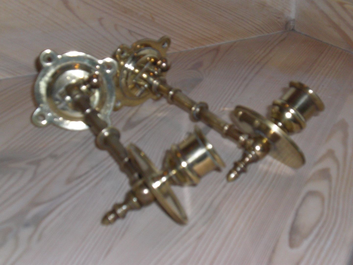 Et par klaverstager i messing fra 1800-tallet, formentlig danske. I meget fin stand. Længde: 18 cm. Fuldt adskillelige og dermed nemme at pudse.