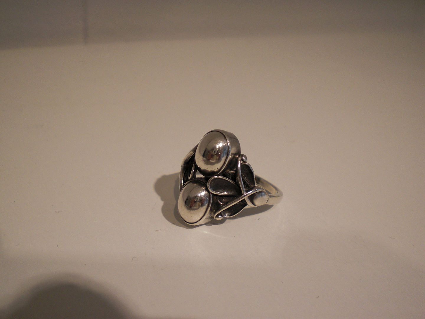 Georg Jensen skønvirkering i sterling sølv design 48 af GJ stempel 1930-1945. Med "sølvsten". Størrelse:57. Vægt: 5,7 gram.