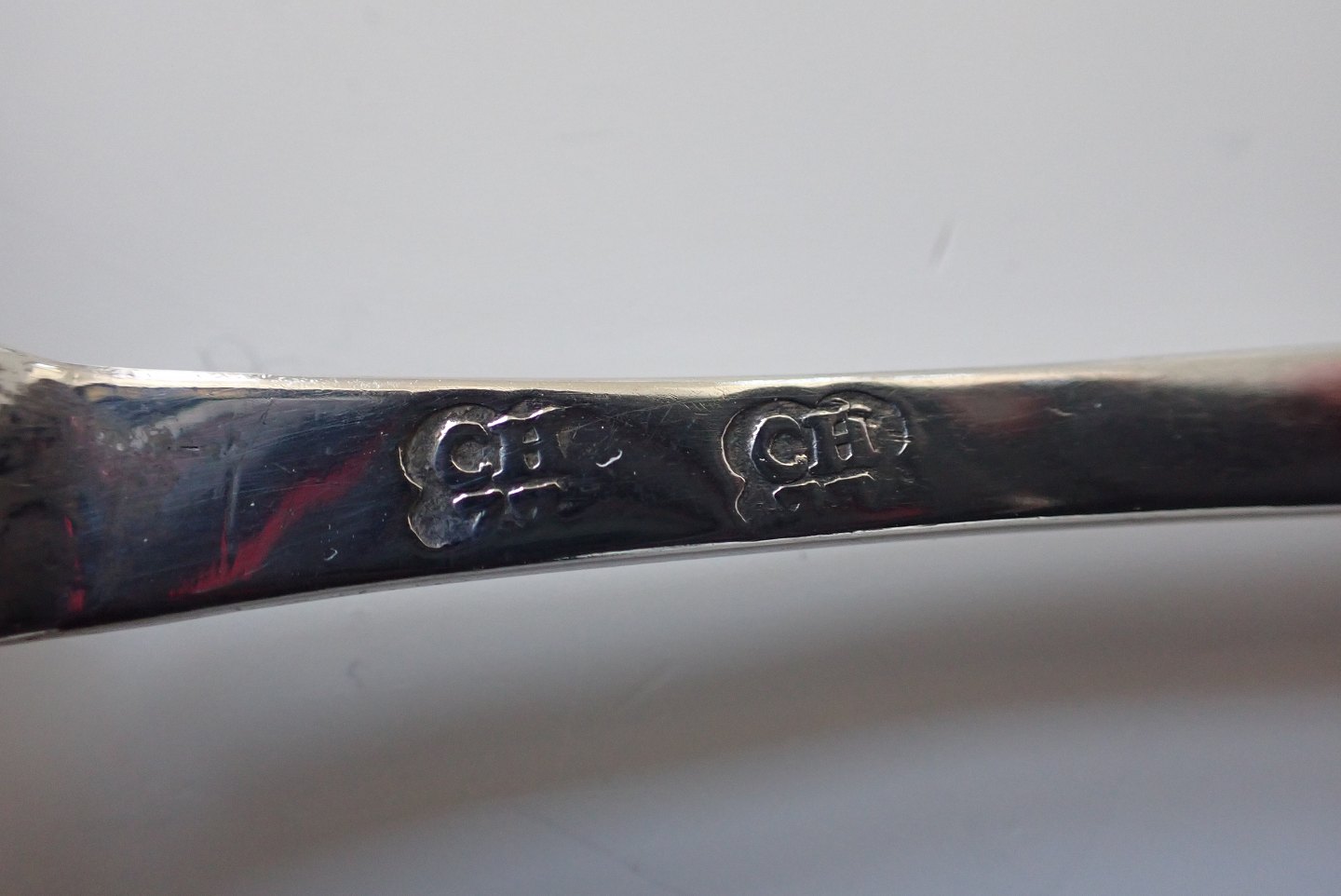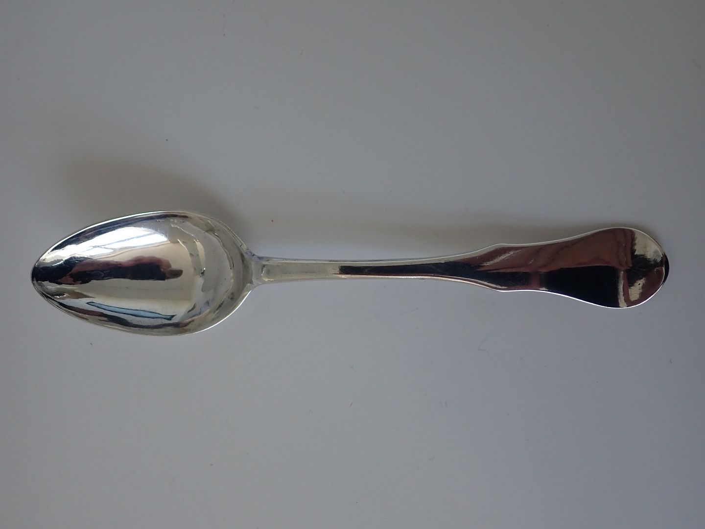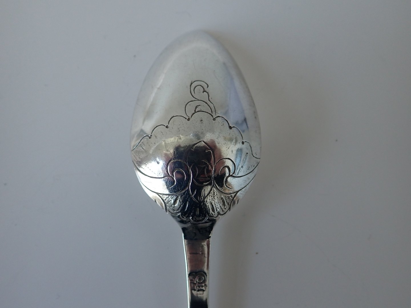 Sølvbarneske med bagsidedekoration og violinskaft stemplet CH77 - Christian N. Hosøe, København (1739 - 1812). 1777. Længde: 7,5 cm - vægt: 34 gram