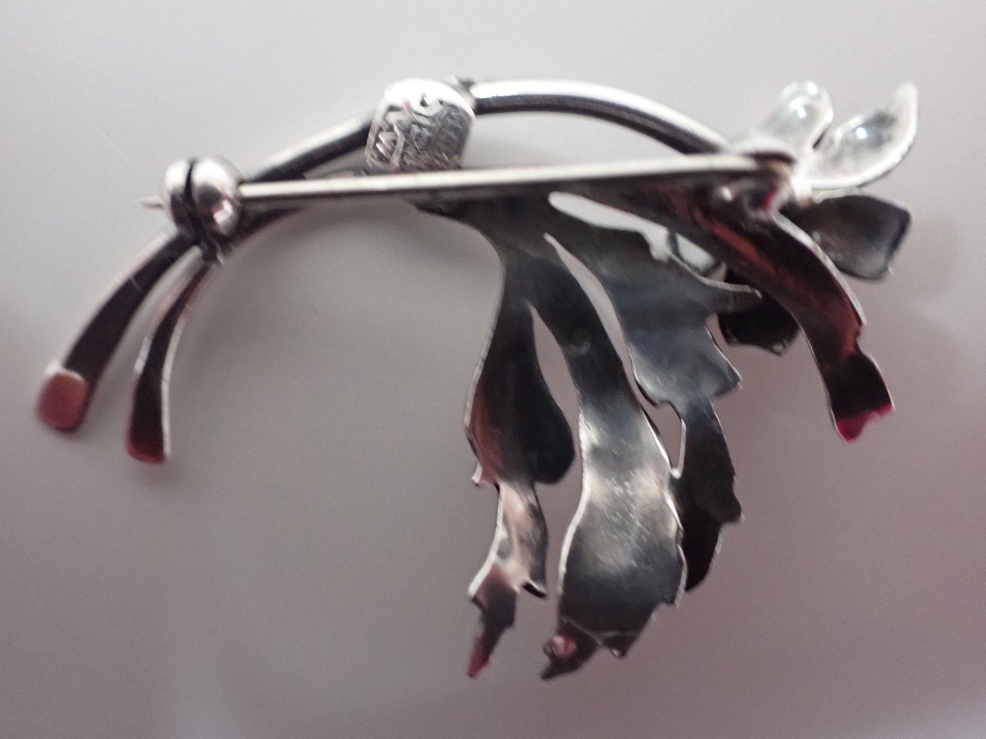 Viggo Wolny, Kbh.(1921 - 11973) - sterling sølvbroche i form af en blomst med facetsleben zikon. Stemplet Denmark, sterling, V.W. Ca. 1950. Vægt: 5,1 gram. Længde:4,5 cm. I fin stand.