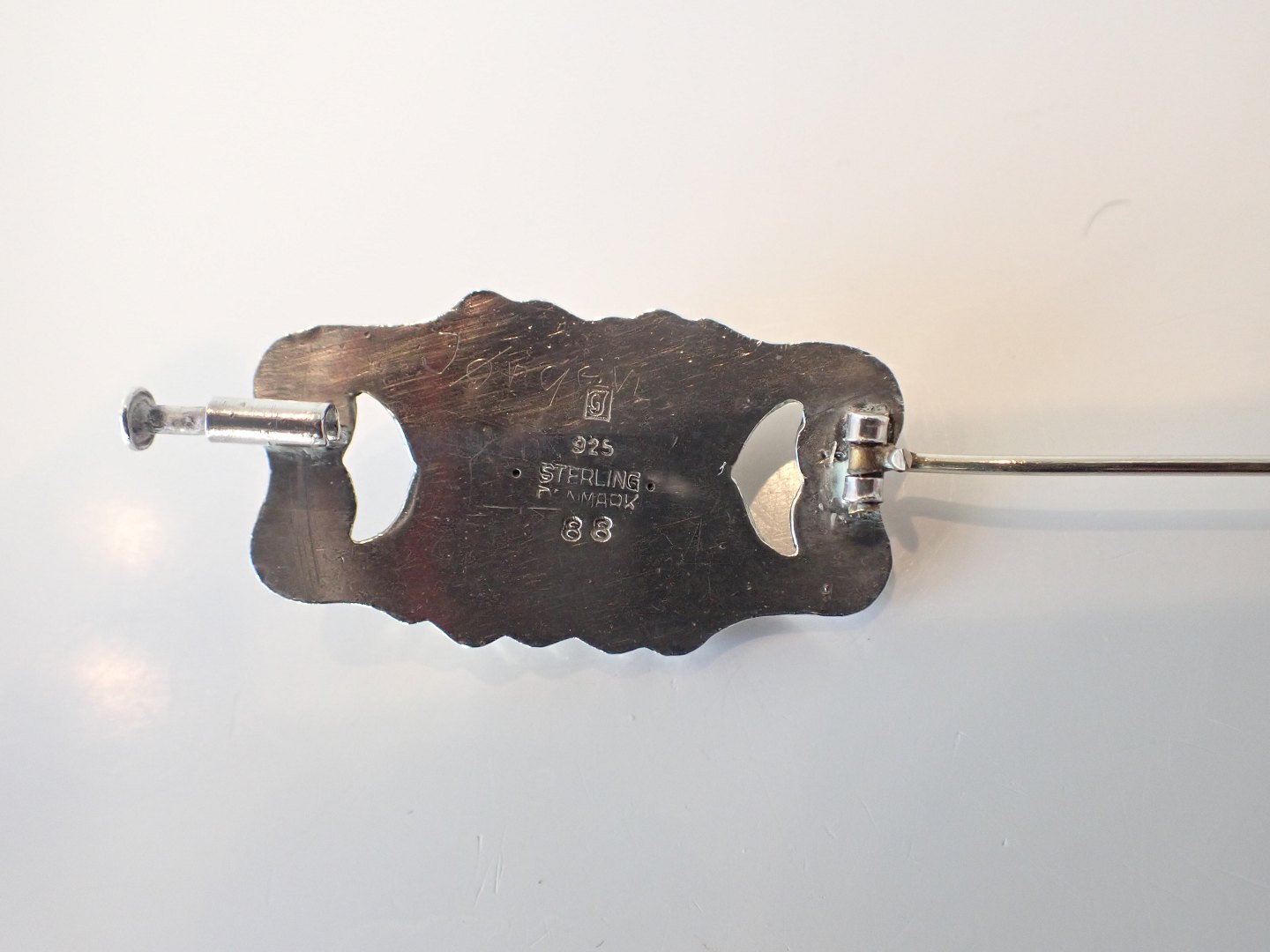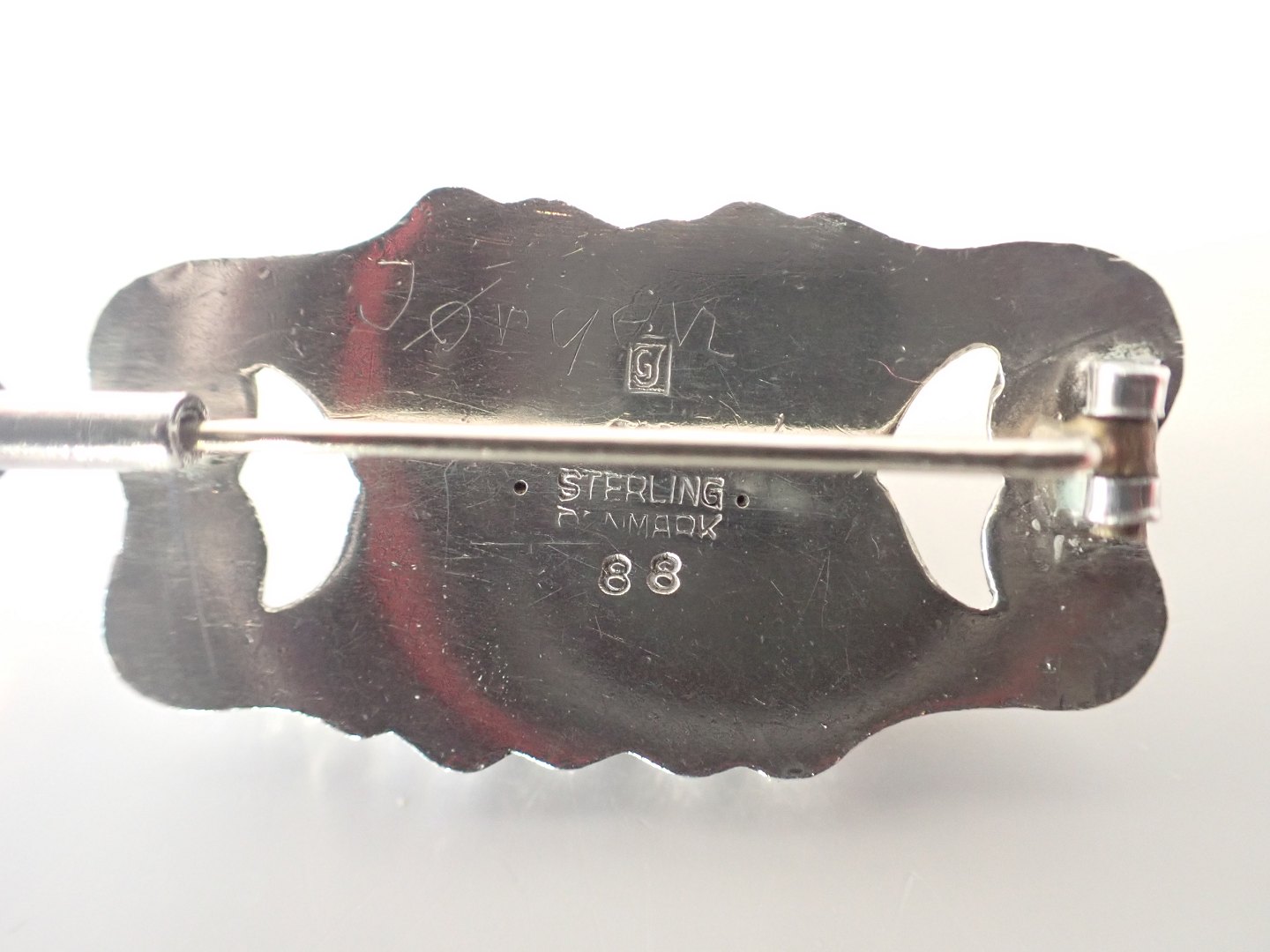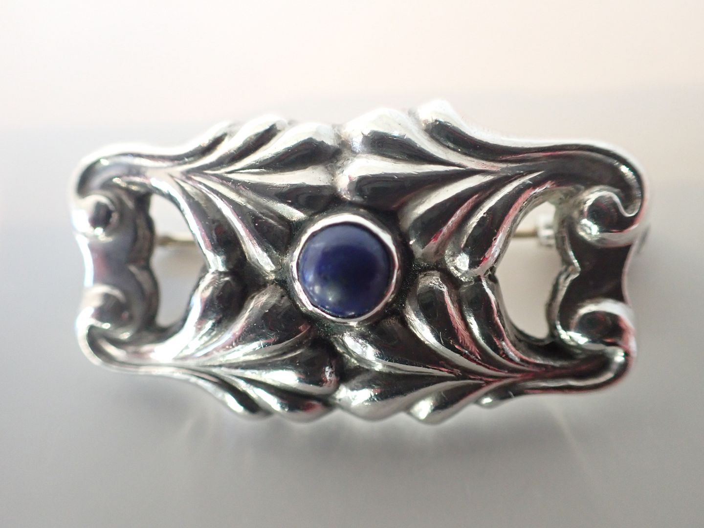 Lille Georg Jensen skønvirkebroche i sterling sølv med Lapis lazuli sten.