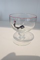 4 emaljemalede glas med rød kant og stiliseret sort hane. Holmegård. Højde: 7,5 cm. Halvkugleformet kumme på lille stilk med rund knap.