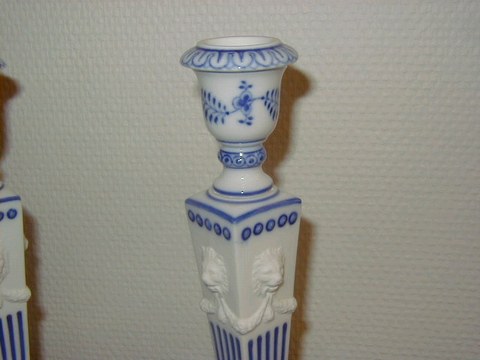 Royal Copenhagen Blue Fluted Plain, Pair candlesticks Dek.nr. 1 / 15. Height 23 cm. Factory First Perfect condition.