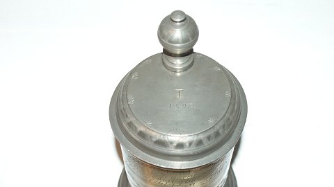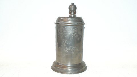 Pewter tankard 1800 century with endless games Probably German, with German text corpus Height 24.5 cm. Stamp in the lid