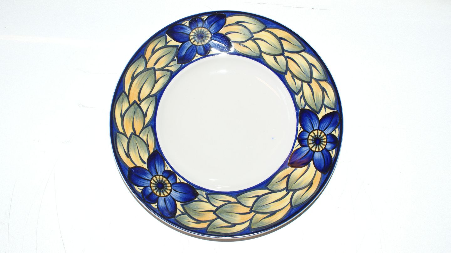 Blå Fasan (Blue Pheasant) Kongelig, Rundt fad med bred fane Uden nr. Diameter 25,5 cm. 2. Sortering Flot og velholdt. Kontakt os for lagerbeholdning