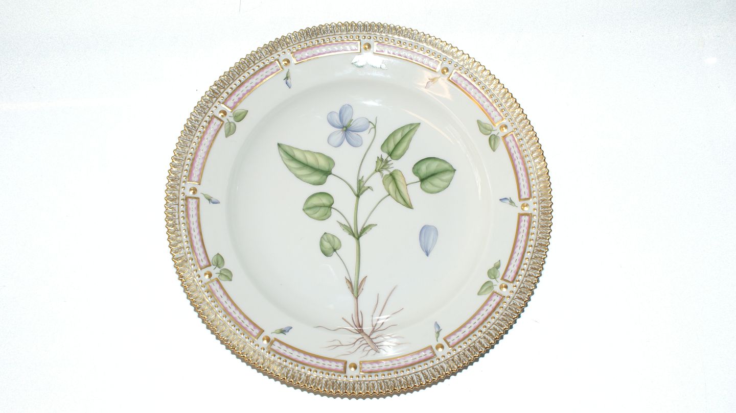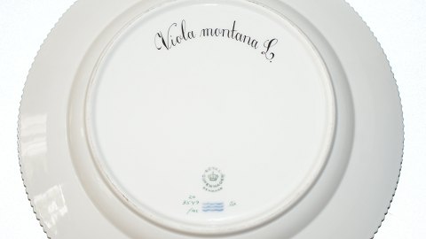 Kongelig Flora Danica Middagstallerken Dekorationsnummer 20/#3549 Motiv: Viola montana L. Produceret mellem 1969-1974 og 1980-1984 Diameter 25,5 cm. 1.Sortering Pæn og velholdt stand