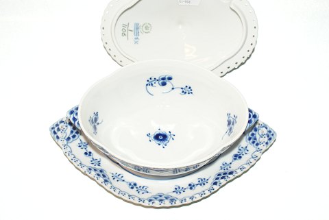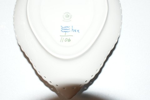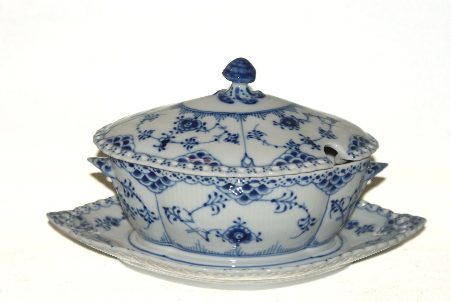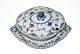 Kongelig Musselmalet Helblonde, Sauceskål med låg 3 sortering Dek. nr. 1/1106 Længde 24,5 cm. Højde 13 cm. Pæn og velholdt