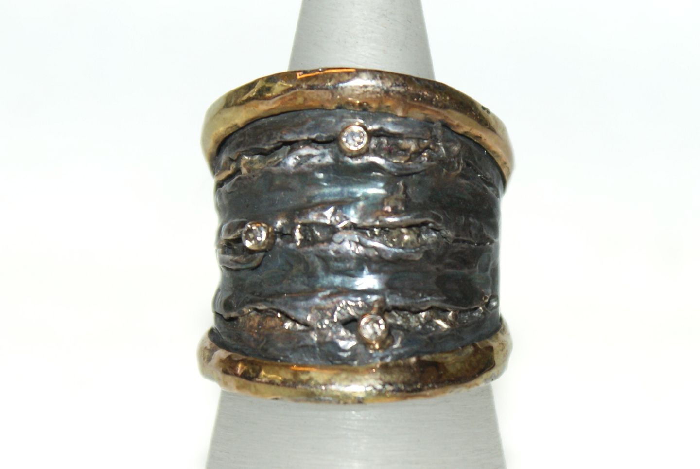 Sort Rhodineret, med Guld kugler og 3 Brillianter