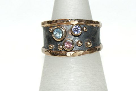 Elegant Empire Slim stones ring Sølv Sort Rhodineret, med Guld kugler og 3 faceted sten Stemplet: 925 BWE Størrelse: 61 / 19,42 mm. Perfekt stand