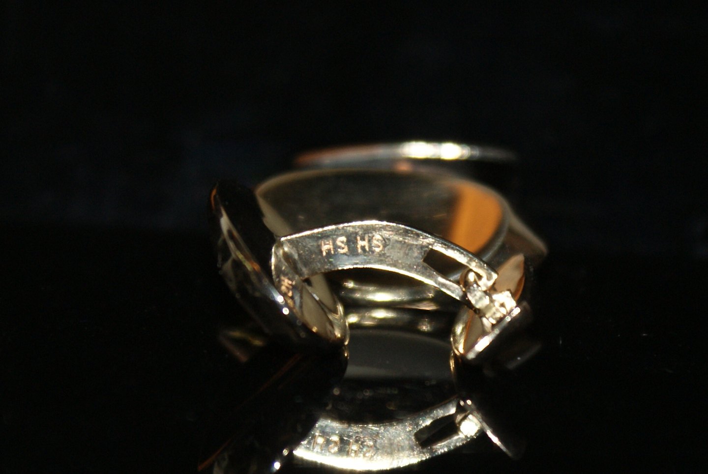 Guld Manchetknapper 8 Karat Stemplet: HS Guldsmed: 1948- Hermann Siersbøl Længde 24 mm. Flot stand og tjekket af guldsmed. Varen findes ikke fysisk i butikken. Kontakt os for fremvisning