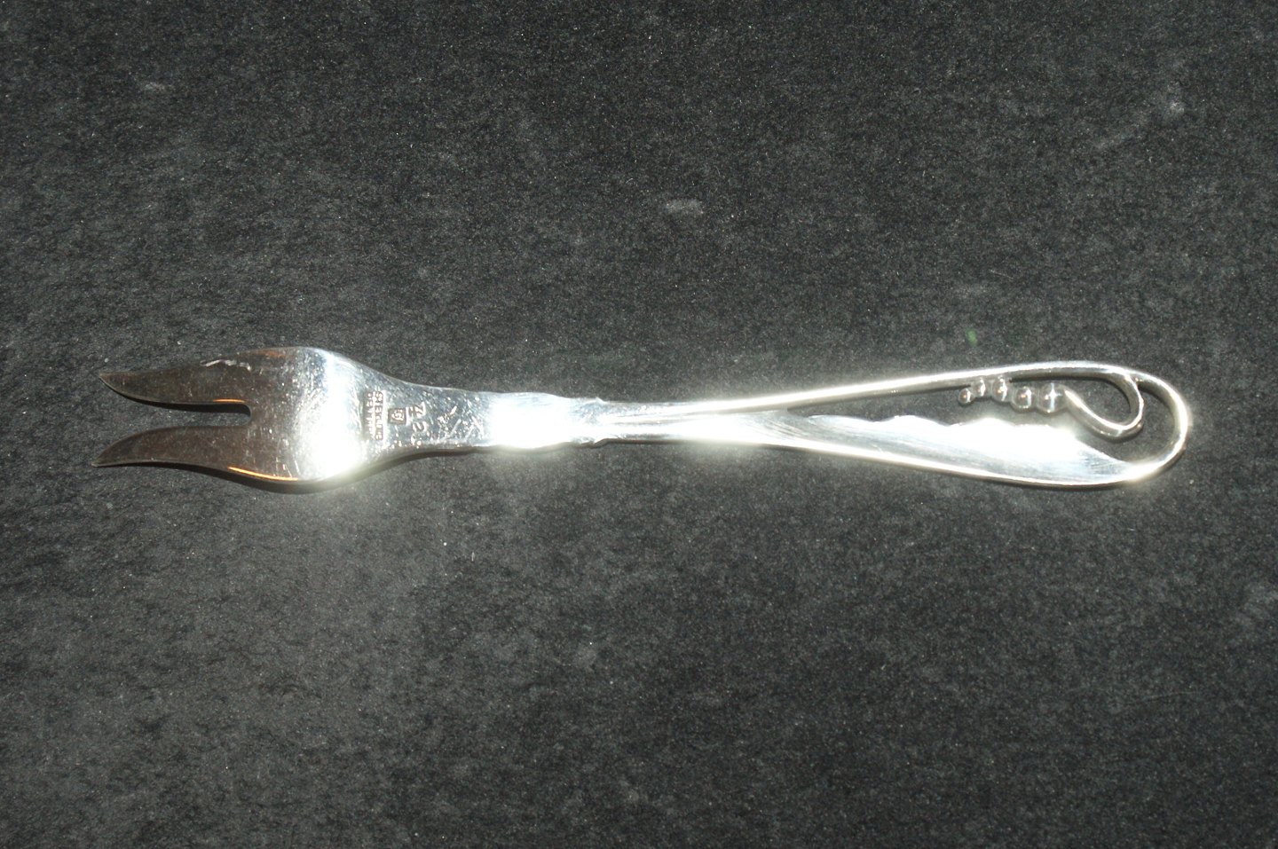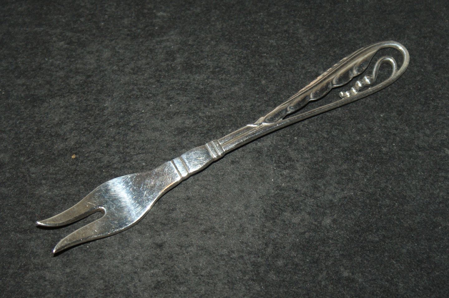 Ornamental Pålægsgaffel # 42 Georg Jensen Georg Jensen, Sterling Denmark 42 Georg Jensen Sølv Stempel brugt 1933-1944 Sterling sølv Længde 10 cm. Velholdt bestik Poleret og pakket i pose