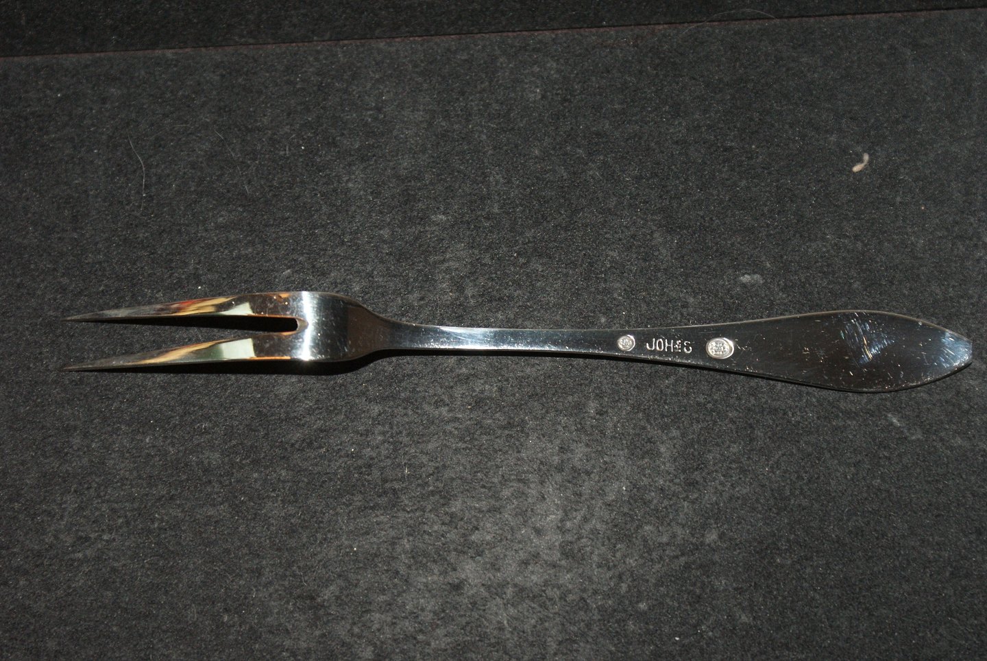 Pålægsgaffel T- mønster Dansk sølvbestik Slagelse Sølv Længde 14,5 cm. Velholdt stand Alt bestik er poleret og pakke i pose https://www.antik-huset.dk/palaegsgaffel-t-monster.html