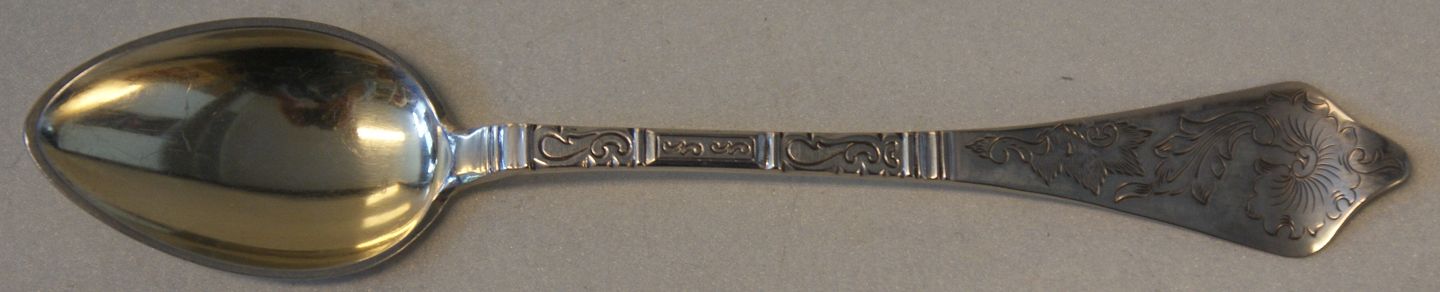 Antik Rococo, Sølv Middagsske med gravering på bag