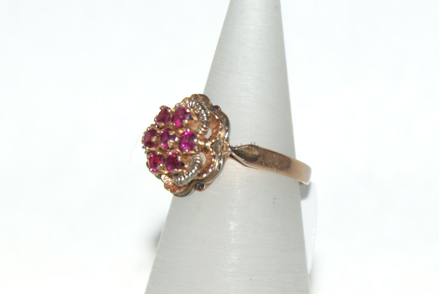 Gold ring with bright red stones 18 Karat