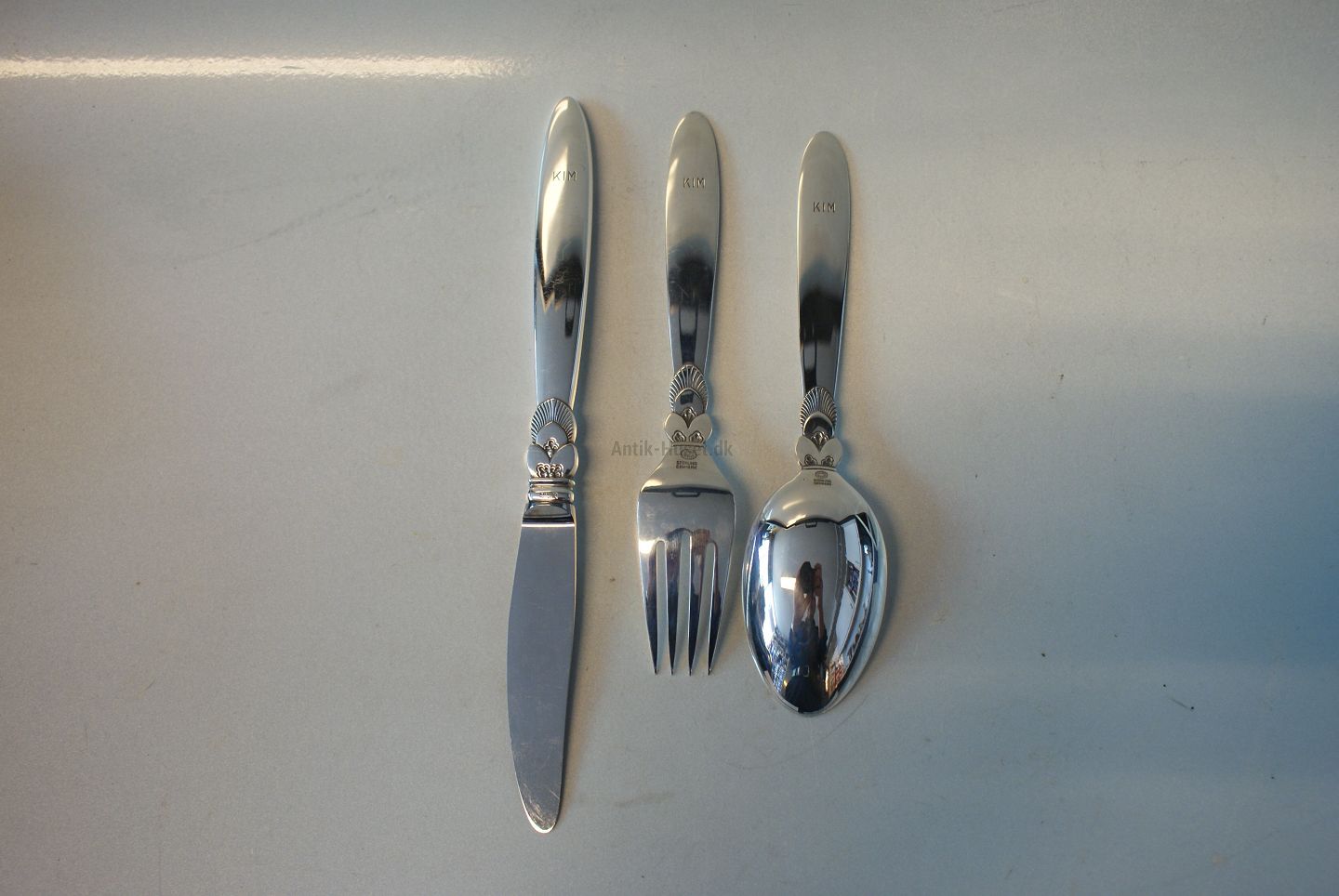 Cactus Lunch cutlery engraved KIM Produced by Georg Jensen. Gundorph Albertus 1930 Blade length 20 cm. Fork length 16.5 cm. Spoon Length 17 cm. Beautiful and well maintained