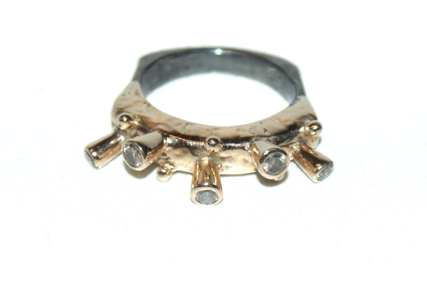 Manhattan Skyline-5 ring Sølv Design: By Birdie 14 karat Guld med 5 Briliant slebet diamanter (0,70 ct) Størrelse 54 / 17,19 mm. Stemplet: 925 BWE Perfekt stand