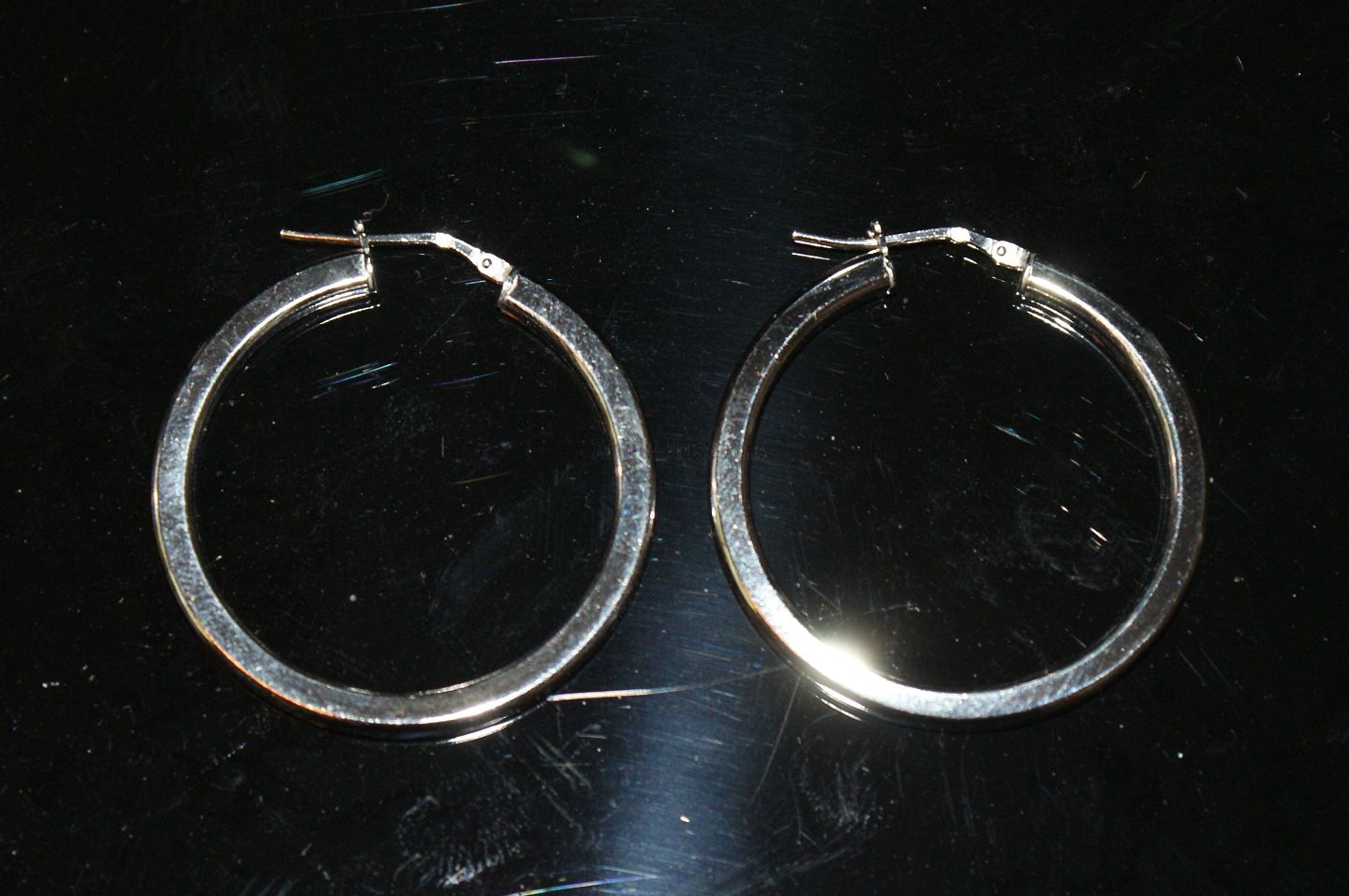 Hoop earrings in sterling silver A few of the really popular creole. Big and beautiful in good quality. The ring is formed of square 6 * 2mm silver. Diameter about 35 mm. New produced.