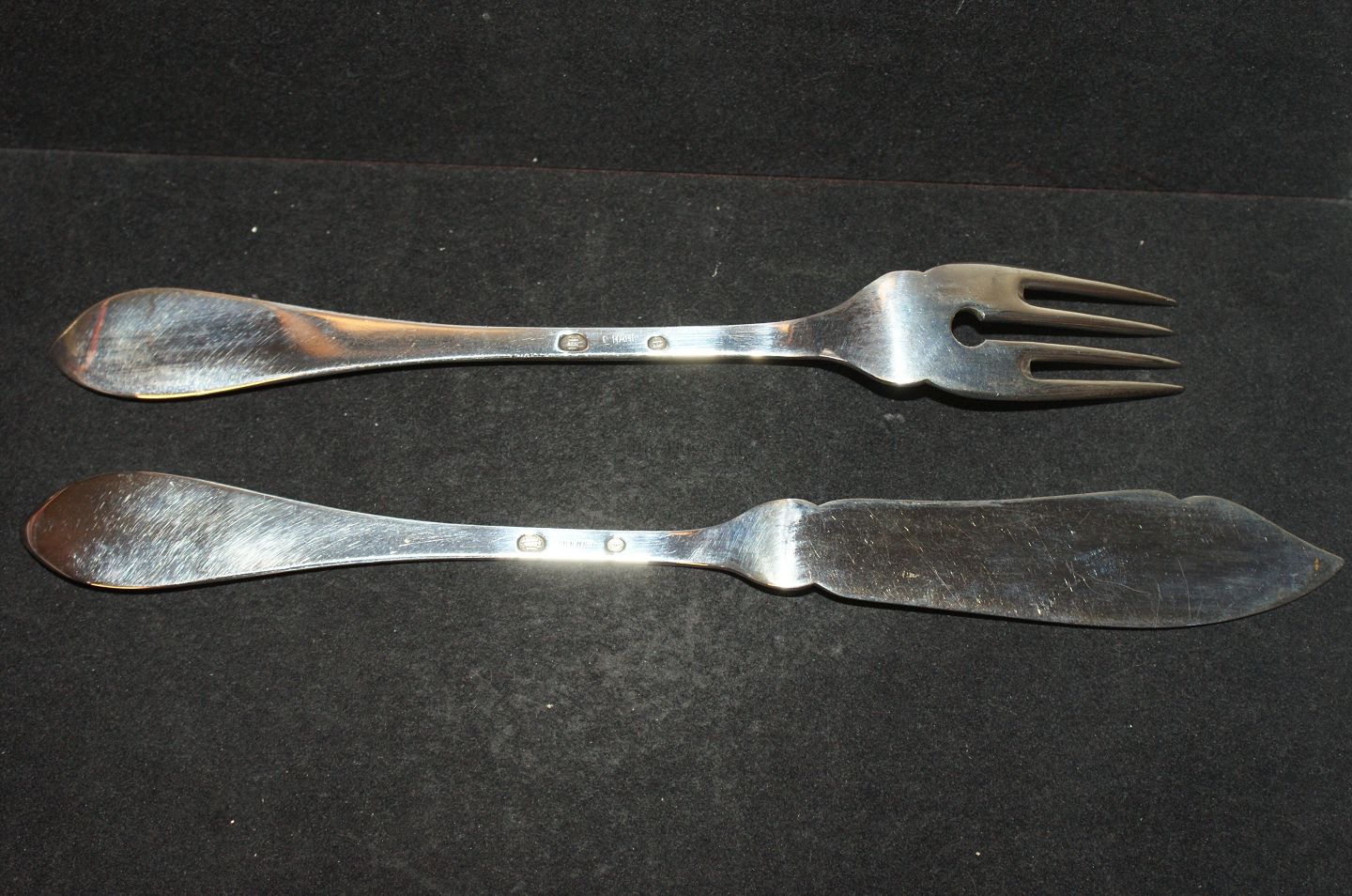 Fish cutlery No. 85 (Number 85) Silver Frigast Silver Knife 22 cm. Fork 19.5 cm. Used and well maintained. All cutlery is polished and packed in a bag