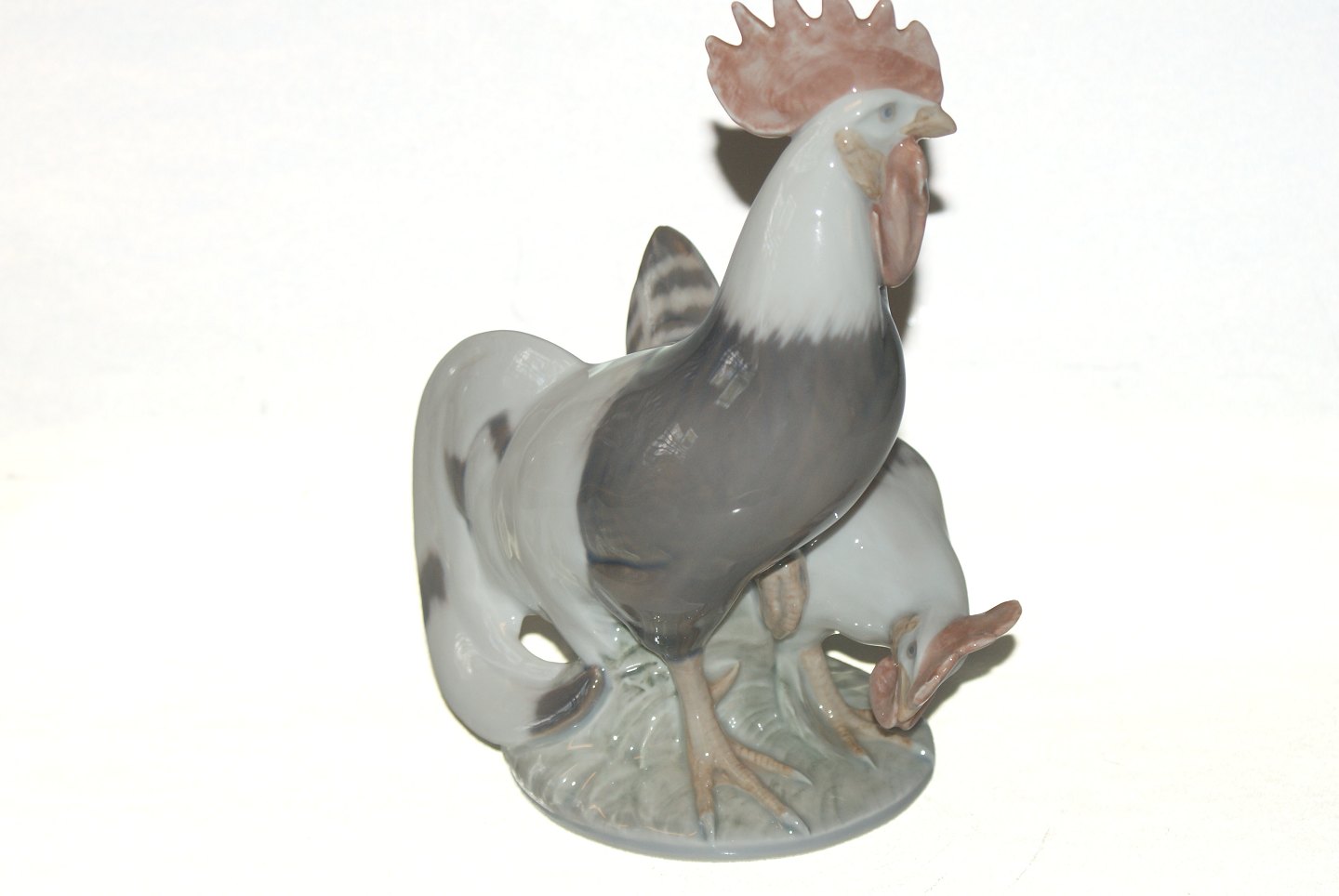 Large and rare Royal Copenhagen figure, Rooster & Hen.