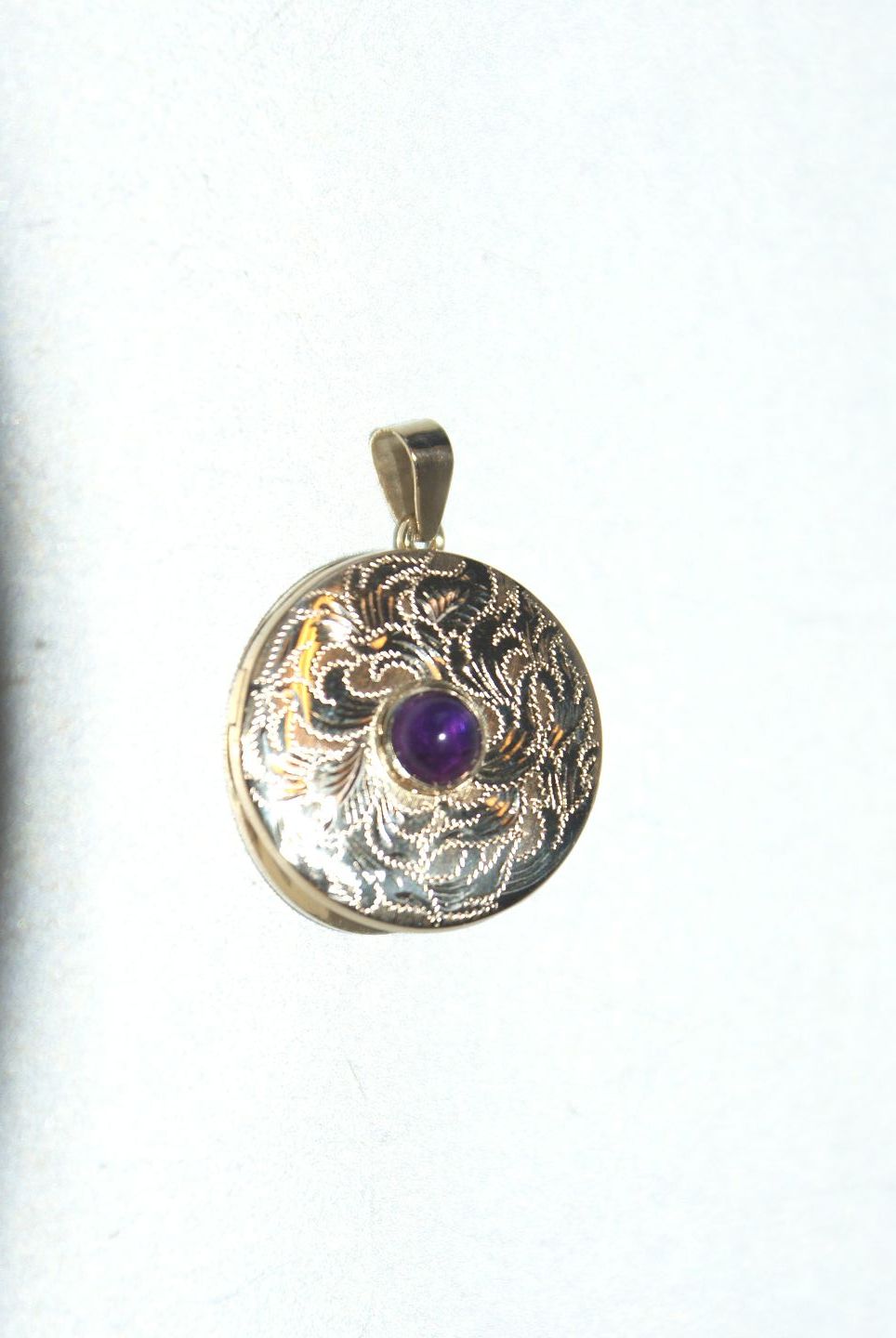 Elegant Medaljon med amatyst 14 karat guld Stemplet 585 GIFA Højde 33,00mm Brede 24,04 mm Tjekket af guldsmed og varen findes ikke fysisk i vores butik så kontakt os for yderligere info eller ring 1 dag før for fremvisning