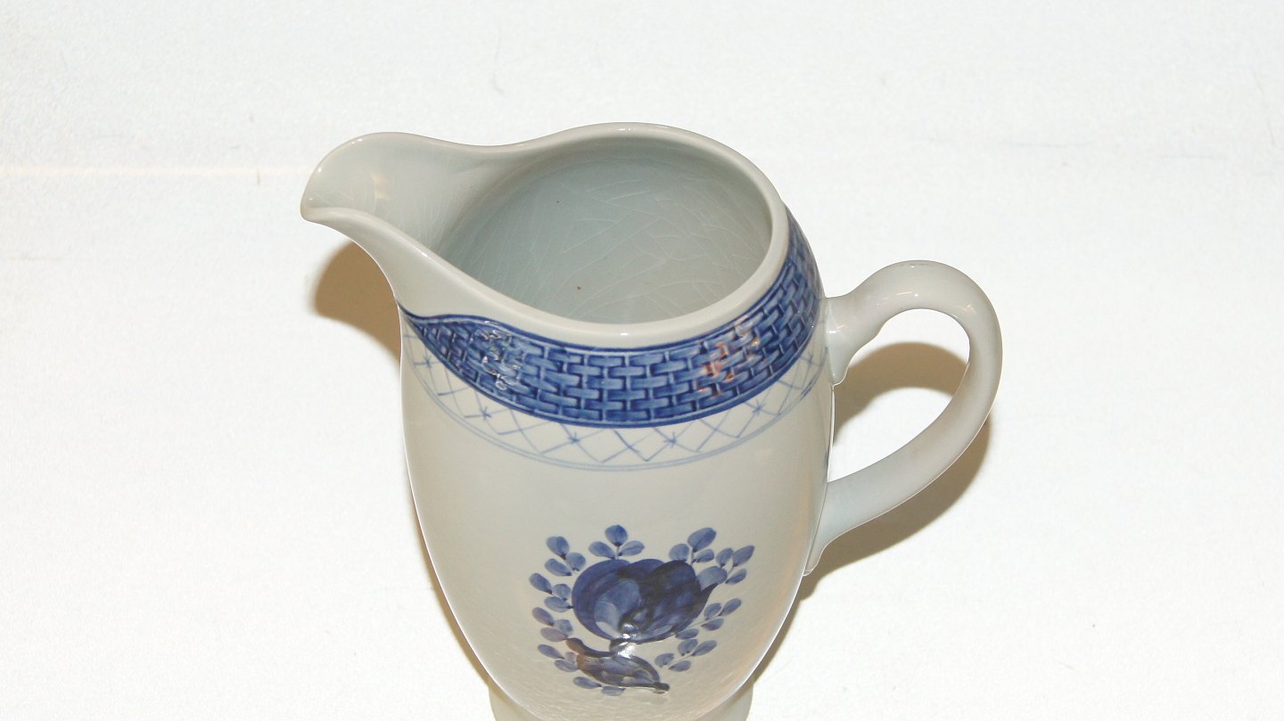 Aluminia Tranquebar, Lille Mælkekande. Dekorationsnummer 11/#1149. 1. sortering. Højde 15,5 cm. Med fejl