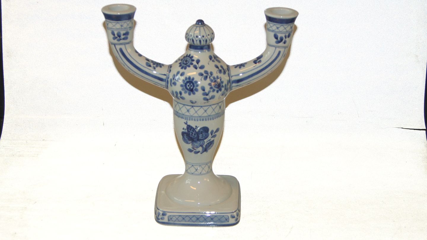 Aluminia Tranquebar, Et par Kandelabre. Dek. # 3037 / # 919. 1st sorting. Height 25.5 cm. Nice and well maintained condition