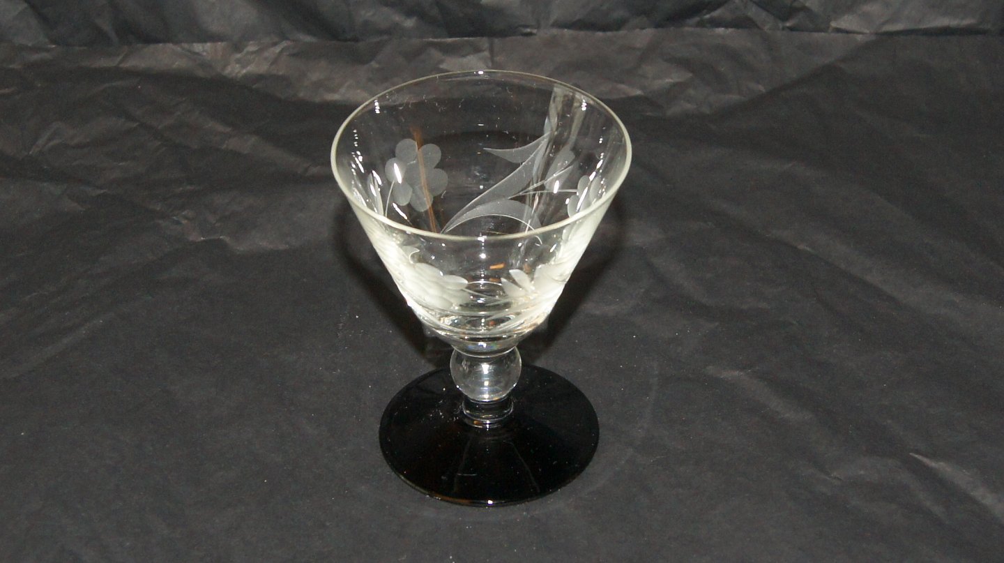 Port wine glass # Rio / Lis With black base Kastrup Glasværk Height 8.2 Nice and well maintained condition