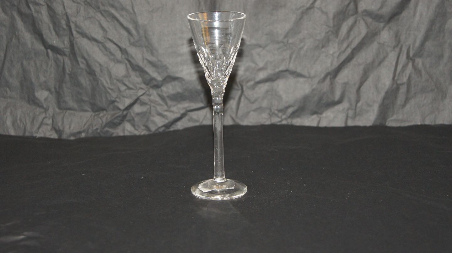 Snapseglas #Fiffa Fra holmegaard med skælslibninger på kumme og øverste del af stilk Højde 13,2 cm Pæn og velholdt stand